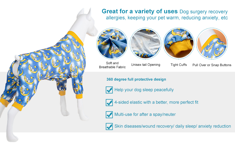 【Perfect for dogs sleeping】 Wearing our professional dog onesie allows them to sleep soundly in both spring, summer, autum and cold winter nights.wearing it makes your pet looks beautiful,lovely.