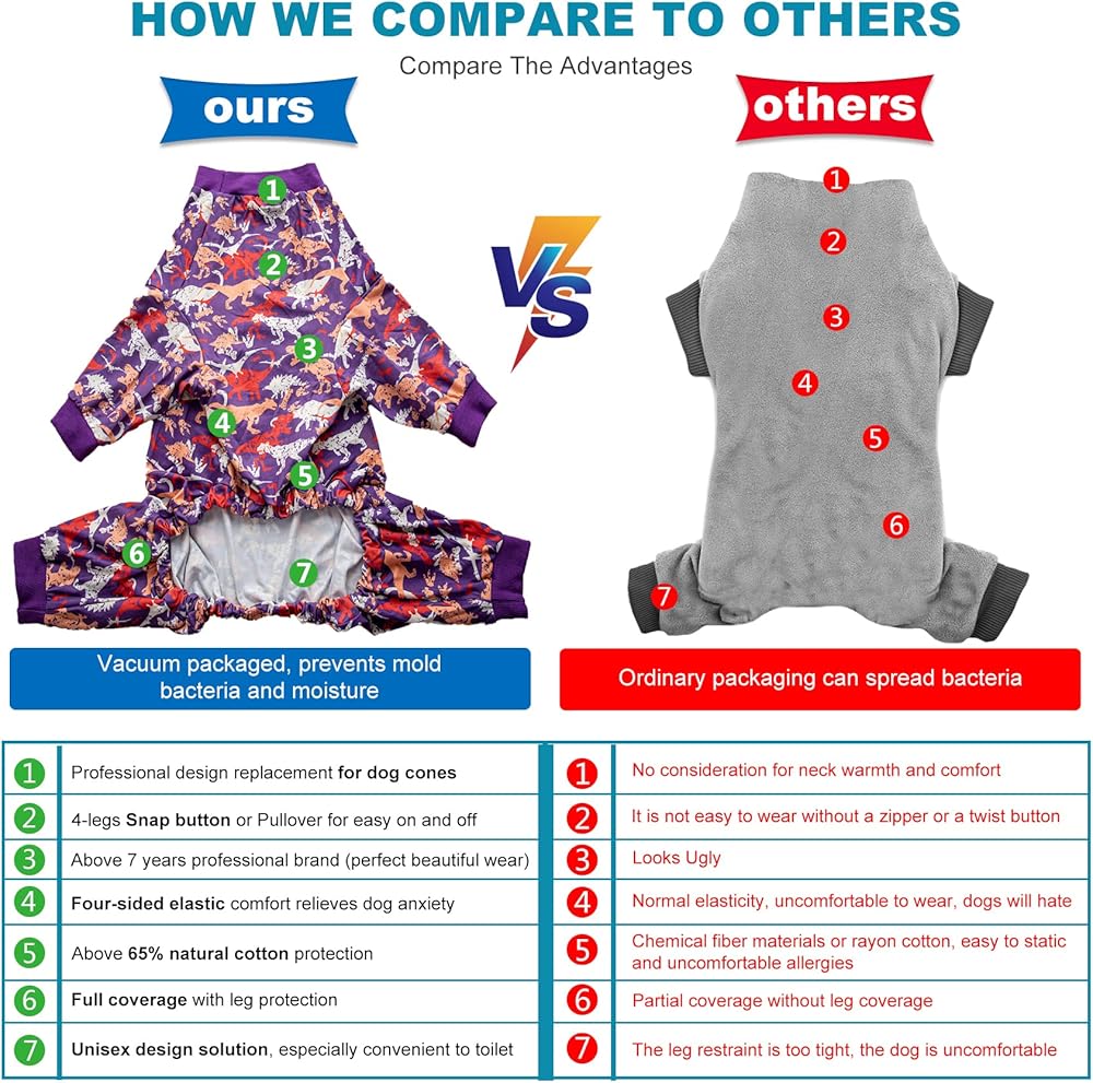 【Helper for Dogs to Recovery】Our dog onesie alternatives to recovery suits or dog cones or a combination with large dog cones.Our dogs pajamas allow dogs to move and eat freely,Your puppy will fell homey and won't be annoyed.