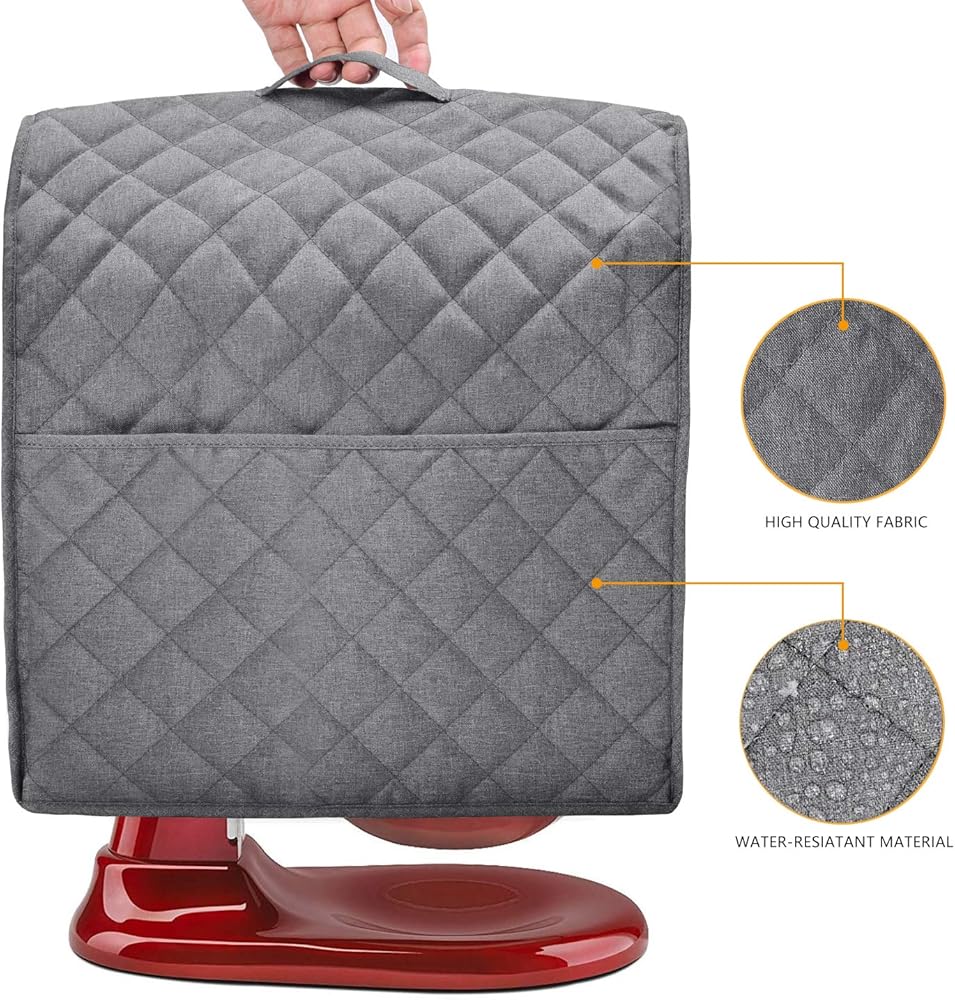 Sturdy, plain water-resistant nylon fabric with neat stitches effectively wards off dings, scratches, dust and food splashes, Perfectly fits your nice looking stand mixer and blends into the decor in the kitchen just fine.