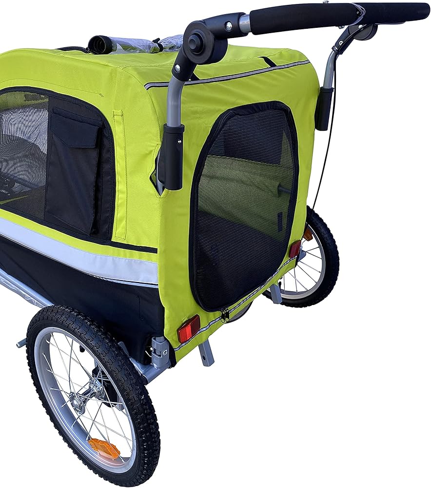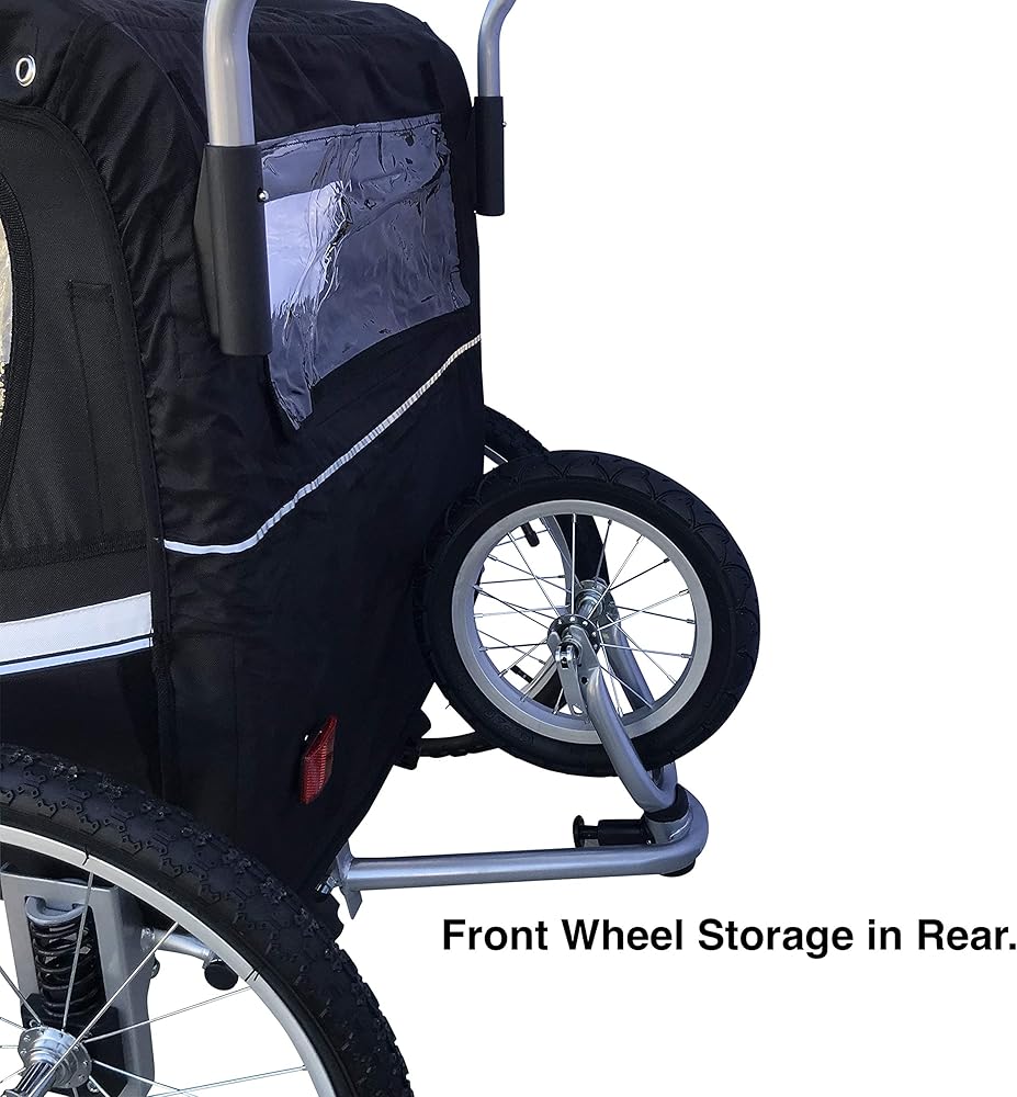 A 3 in 1 pet stroller, bike trailer and jogger. Bike arm, hitch included, handlebar and front wheel included. Made with suspension and rust free aluminum wheels. Buy from a trusted brand who has been in business for 15+ years and counting. Feel comfortable that you will be able to get future support on your product. For post purchase support contact the seller. Do not contact Amazon.