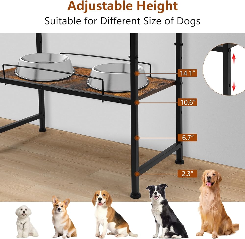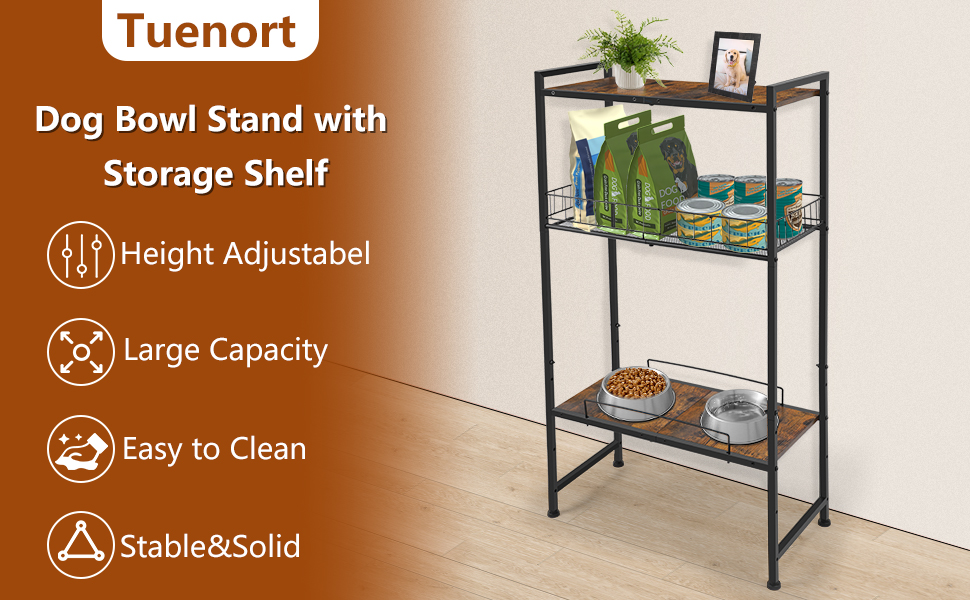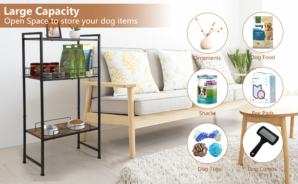 【Easy To Install】The dog bowl holder with storage shelf is easy to assemble in few seconds, comes with all needed hardware,please refer to the installation manual before you assemble.