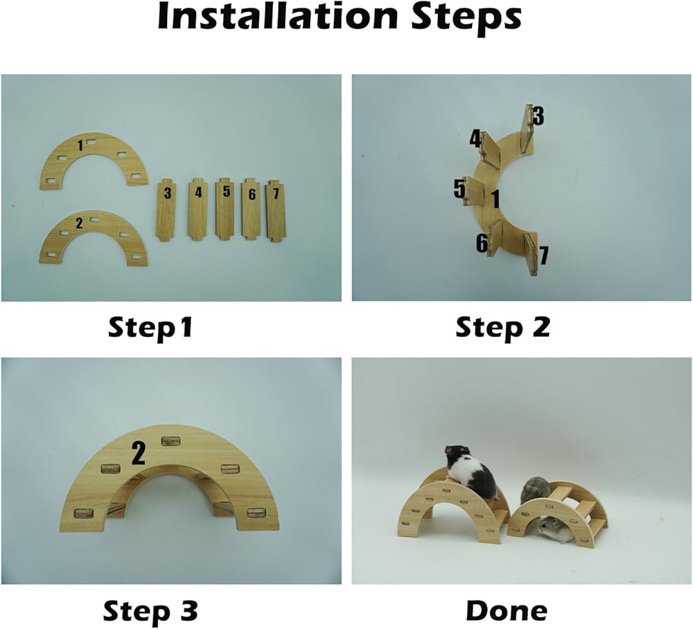 Easy Installation: Enjoy a hassle-free setup with our wooden arch bridge. Follow simple instructions, and with the help of detailed images and videos, your hamster's new playground will be ready in no time. Provide instant joy with quick and convenient assembly!