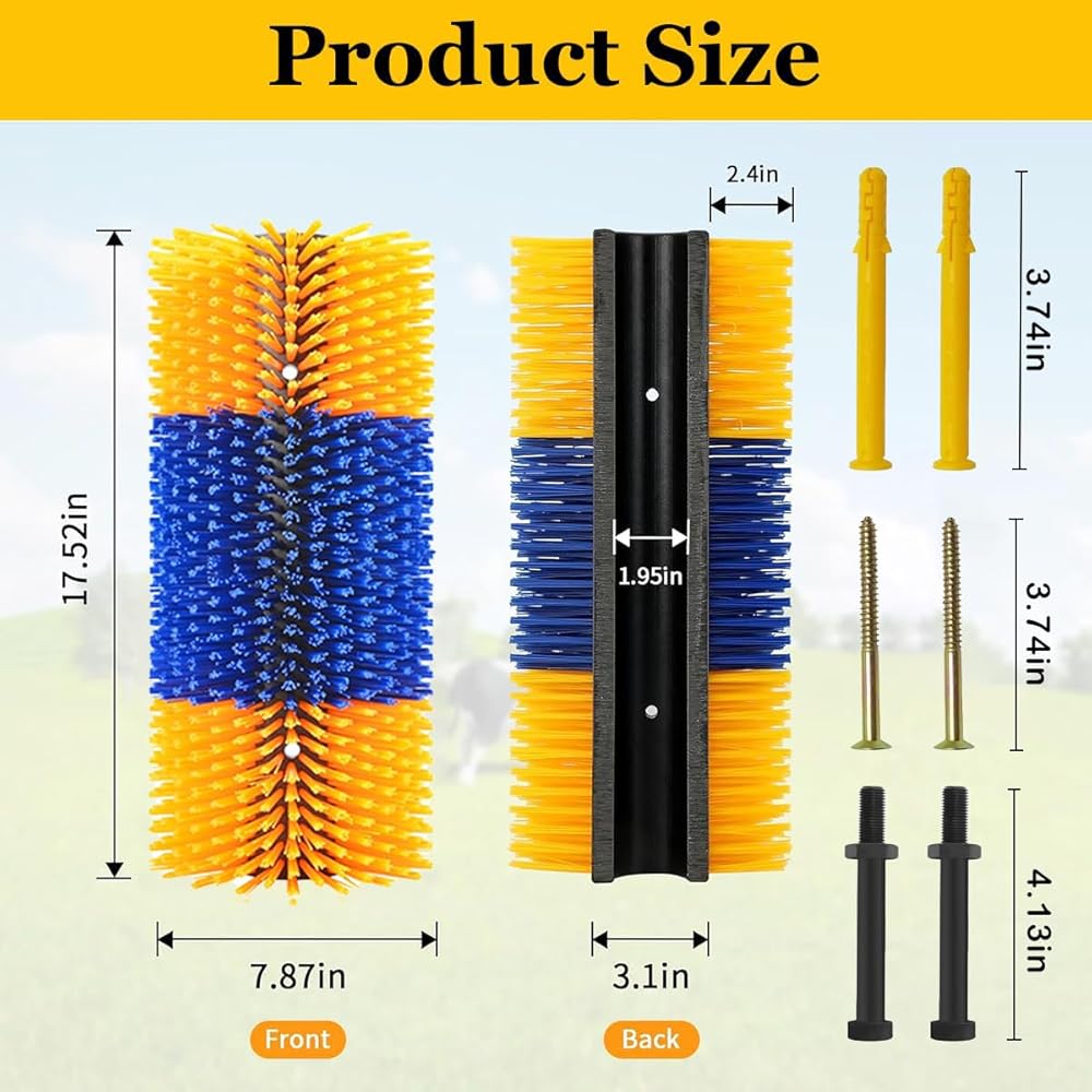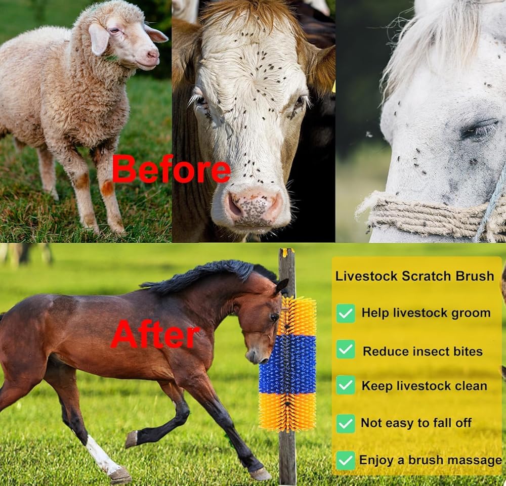 【Solve the Troubles of Livestock 】This brush can be easily mounted on fence posts, livestock pens, or outdoor trees. Get rid of itchy coats, scratch off excess hair, and keep your livestock clean.