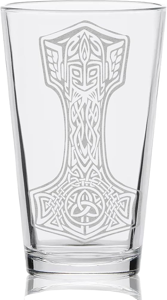 MJOLNIR HAMMER Engraved Beer Pint Glass | Inspired by Vikings & Norse Mythology | Great Gift Idea!
