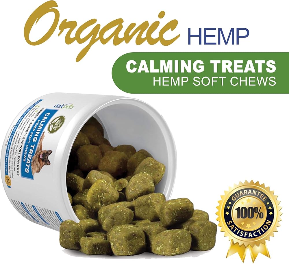 Safe, Effective, Naturally-derived Complex - Made In USA: Wheat free, soy free, corn free and dairy free. These treats also contain Organic Ginger Root, L-Tryptophan and Organic Passion Flower to help balance dog behavior to minimize disruptive outbursts, while Valerian Root works with Organic Hemp Powder and Organic Hemp Oil to help reduce restlessness & travel anxiety