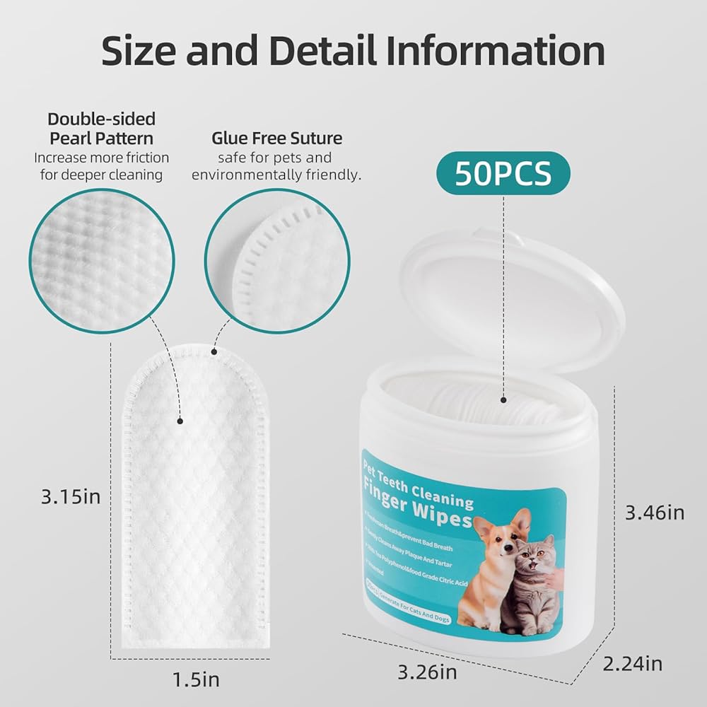 Dog Teeth Cleaning Dental Wipes - Reduces Plaque & Freshens Breath Finger Wipes, Disposable Gentle Cleaning & Gum Care Pet Wipes - 50 PCS