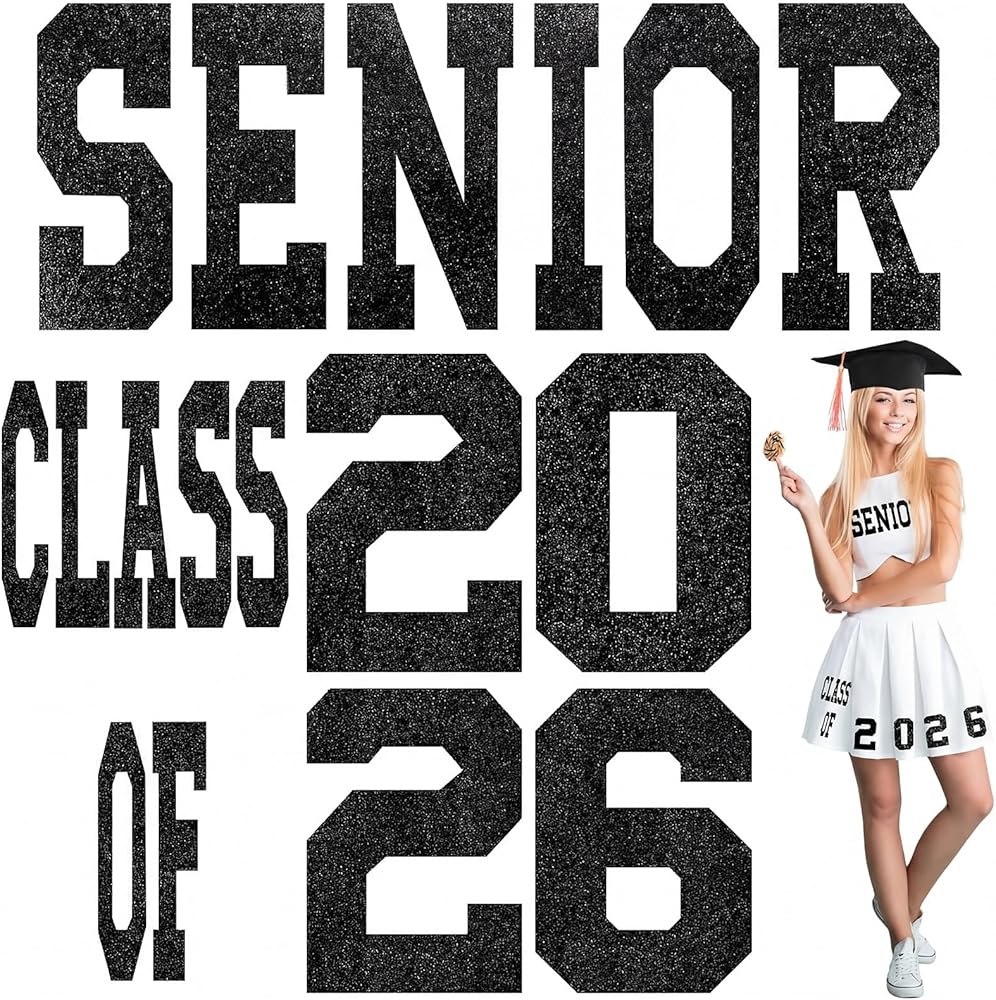 Yinkin Senior Class of 2026 Iron on Patches Glitter Senior Iron on Patches 2026 Graduation Decals Graduate Skirts T Shirts Cap Letters Transfer for Fabric Clothing DIY Crafts(Black)