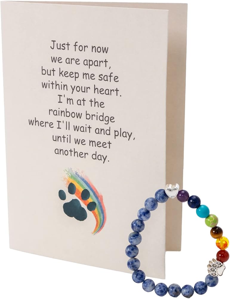 Rainbow Bridge Pet Memorial Gifts, Bereavement Sympathy Gift for Loss of Dog or Cat, Soft Rainbow Bridge Blanket and Bracelet Set with Comforting Heartfelt Sentiment Card