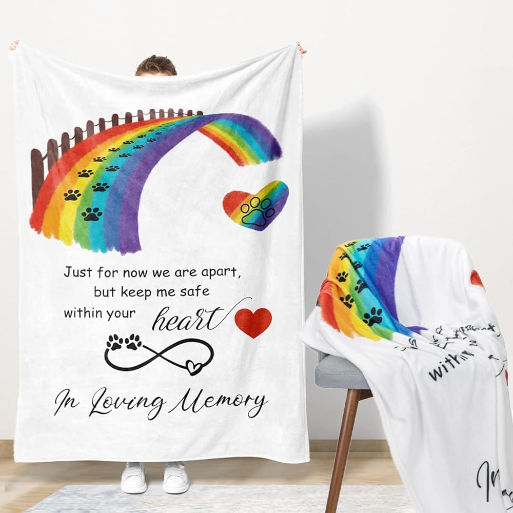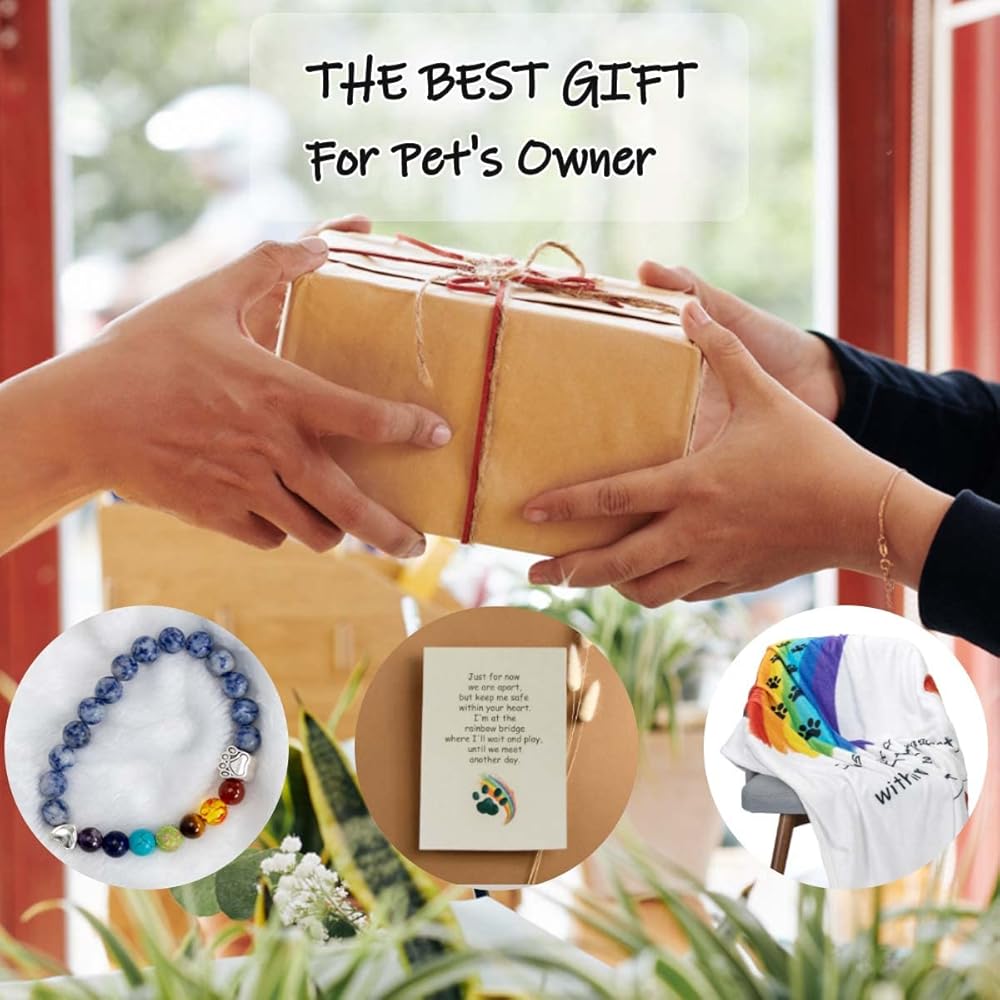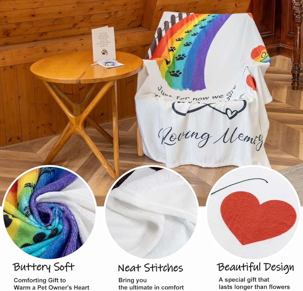 🐾 In Memory of Your Loving Fur Friend - This pet loss gifts blanket will keep you wrapped in those wonderful moments you spent with your furry friend. The rainbow bracelet & touching message card, makes perfected pet memorial gifts to remember the love and warmth of a furry best friend.