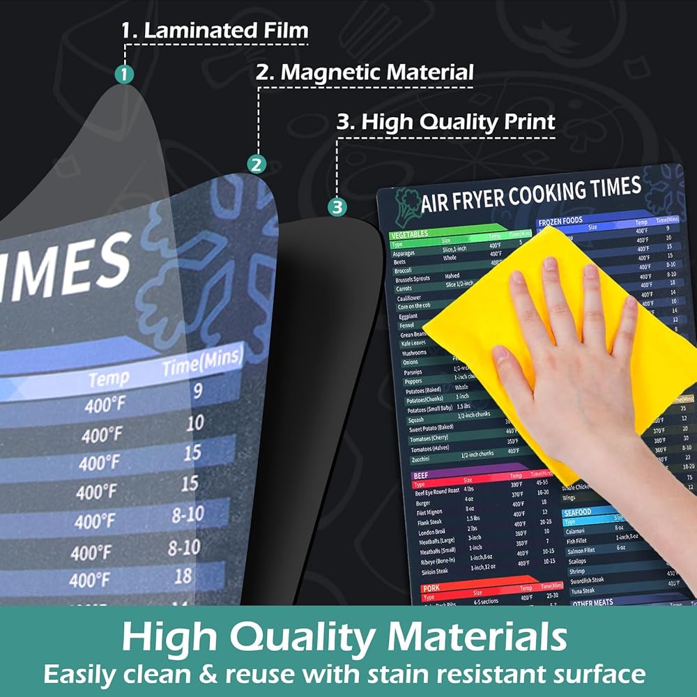 GeeRic Air Fryer Magnetic Cheat Sheet Set, 2 Pack Air Fryer Accessories Cook Times, Comprehensive Air Fryer Cooking Times Guide for Perfect Meals Every Time