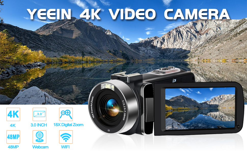 【WIFI Connection & 2.4g Remote】YEEIN 4K video camera adds wifi function, Downloading "XDV PRO" APP, it will turn your phone into a remote to control the camcorder, and browse images or download files from the camera to mobile phone by wifi for sharing with your friends. Also come with a 2.4G remote control, its remote control distance can be as long as 50 feet, no one will miss any precious moment.