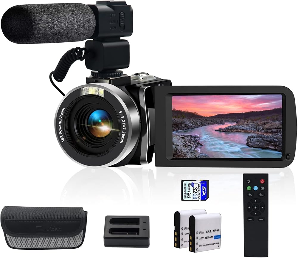 Camcorders Video Camera 4k with 3" Touch Screen and 32G Card, WiFi Digital Camera, 18X Digital Zoom, Vlogging Camera for YouTube Video Recording, Kids Video Camera, Remote, Microphone
