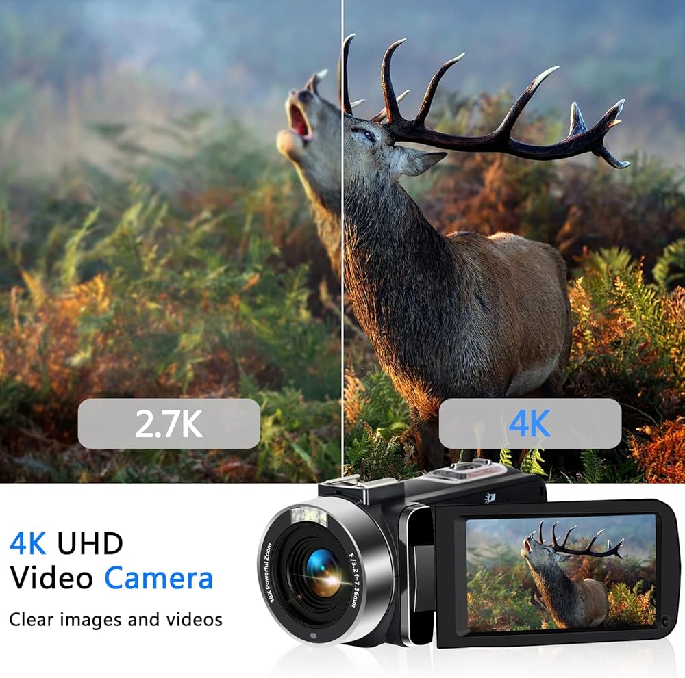 【UHD 4K Video Camera】- 4K UHD 30FPS Recording and 48.0MP image resolution, 18x digital zoom camera. Support time-lapse photography, continuous shooting, low-speed video, PC camera function. YEEIN camcorders video camera comes with two 1500mah batteries and a battery charging station, never have to be afraid of running out of batteries, record the beautiful moments of life anytime.