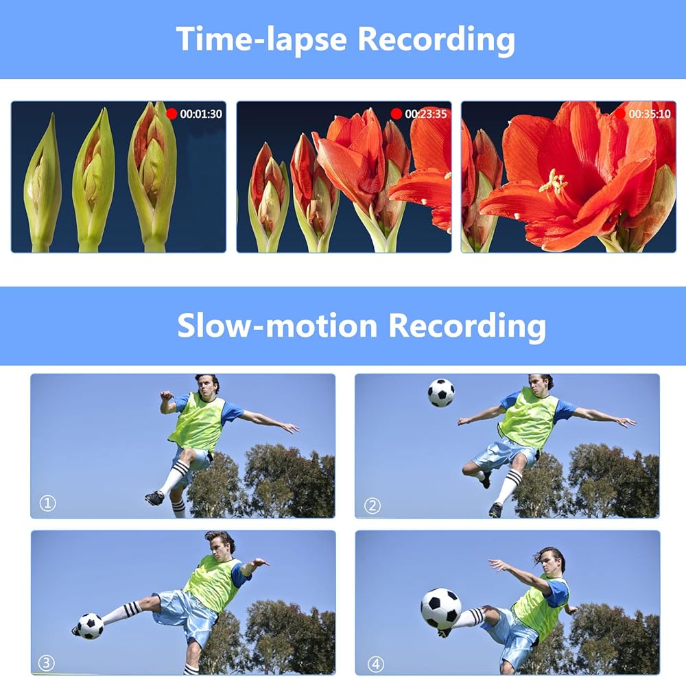 【Multifunctional Camcorder】This video camera supports recording while charging, video at intervals, low-speed video, motion detection, time-lapse, self-shooting and continuous shooting, data stamp, playback modes, TV output, and pause function etc. With the pause function, you can pause the video when you need to convert the scene without reopening a new file. Best Christmas and Birthday gifts for Kids, teenagers and beginners.