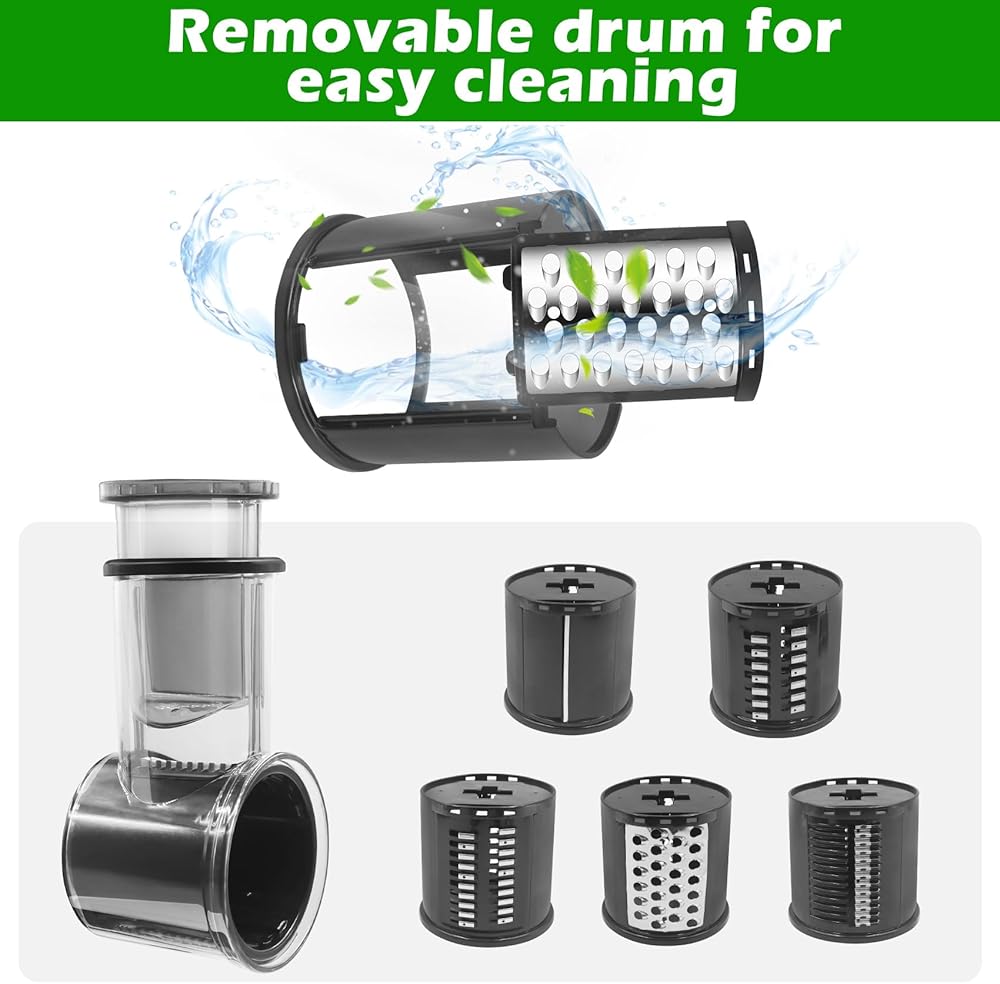 【With 5 Different Blades】Slicing blade,Electric Cheese Grater,Cutting cone ,Wave stripe blade,3mm shredder blade,5mm shredder blade,Blades can be installed according to your requirements.