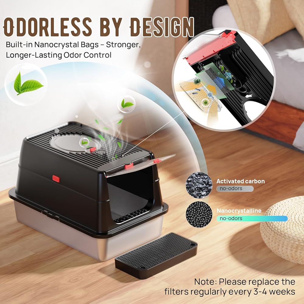 • 😺💟【Say Goodbye to Stains and Odors】Get rid of odor from cat litter with the BEST JAJA high sided litter box. Its high-wall and enclosed designs ensure an odor-free, easy-to-clean environment. The upgraded 304 litter box stainless steel with a non-stick surface prevents stains and odors, providing a fresh environment year-round with minimal effort.