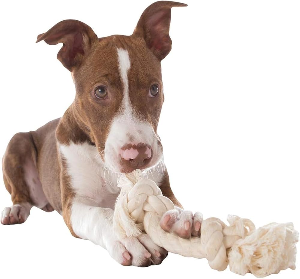 FLOSSY CHEWS 2 KNOT TUG ROPE Cleaning your dog's teeth has never been so much fun! Mammoth Flossy Chews are premium cotton chew toys that are perfect for tugging and tossing, while flossing your pup's teeth at the same time. Playtime is a great way to strengthen the bond between you and your pet, and this cotton chew toy has a 2 knot, bone style design which makes it perfect for carrying and pulling. The knotted ends make the dog rope easy to throw for games of fetch, and offer a great grip for humans during dog tug of war games. The rope bone design is also easy for your pet to toss, catch and carry. Along with being ideal for interactive play, these dog knot toys are also a safe dog chew toy for supervised solo play, keeping your pet busy and happy. TOSS, TUG & FLOSS While your pet is having so much fun, the rope dog toy's also cleaning their teeth! Made from biodegradable, 100% natural cotton, Mammoth Flossy Chews are safe, durable tug toys for dogs that help to control plaque and tartar and maintain good dental hygiene. The cotton chew toy's fibers floss your dogs' teeth as they chew and play. Mammoth Flossy Chews dog toys are available in a range of sizes to suit different breeds and ages. For dogs considered to be ‘regular chewers', choose our Mini dog toys for dogs under 15lb, Small for 15-30lb, Medium for 30-50lb, Large for 50-80lb and X-Large for over 80lbs. We recommend choosing one size larger dog toys for aggressive chewers. MAMMOTH PET PRODUCTS We understand that pets are part of your family and that they require fun and engaging toys to keep them happy and active. We offer a large variety of interactive dog toys made using the highest consumer product standards, from mini toys for playful puppies to colossal and tougher toys for larger, more active chewers.