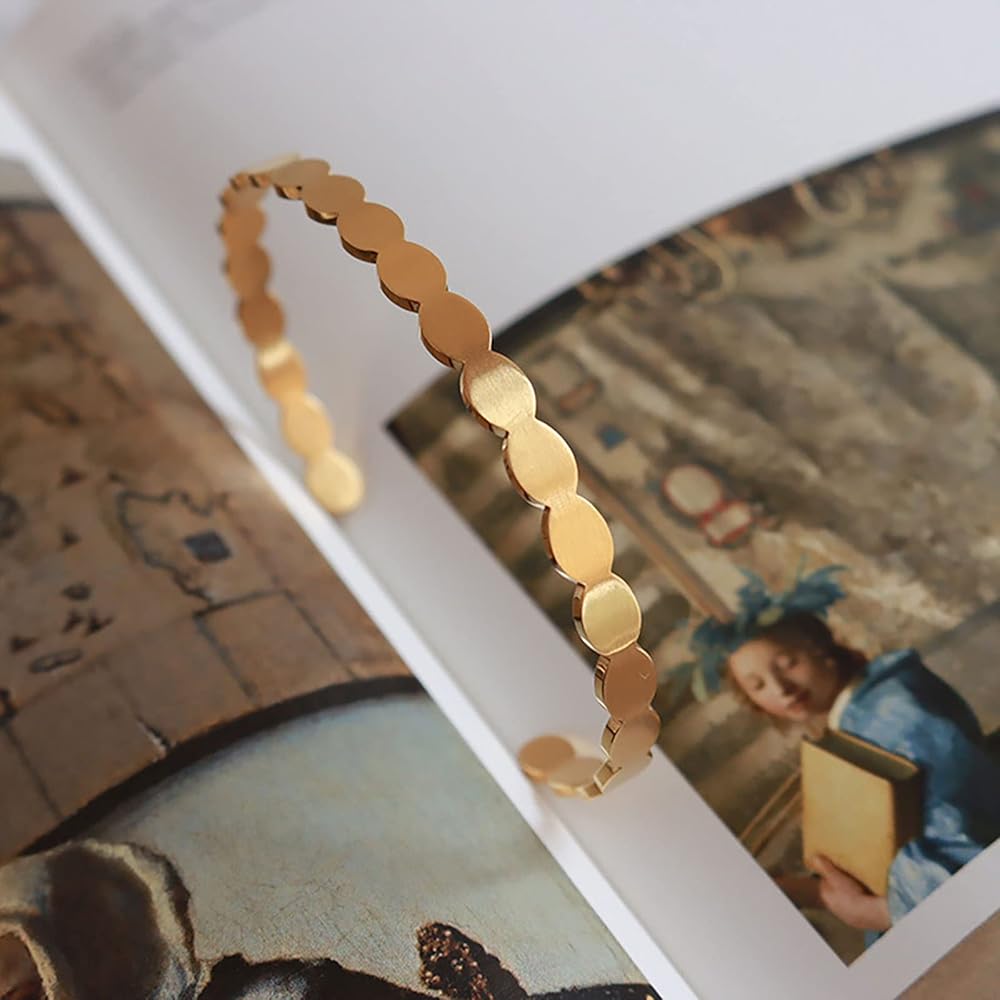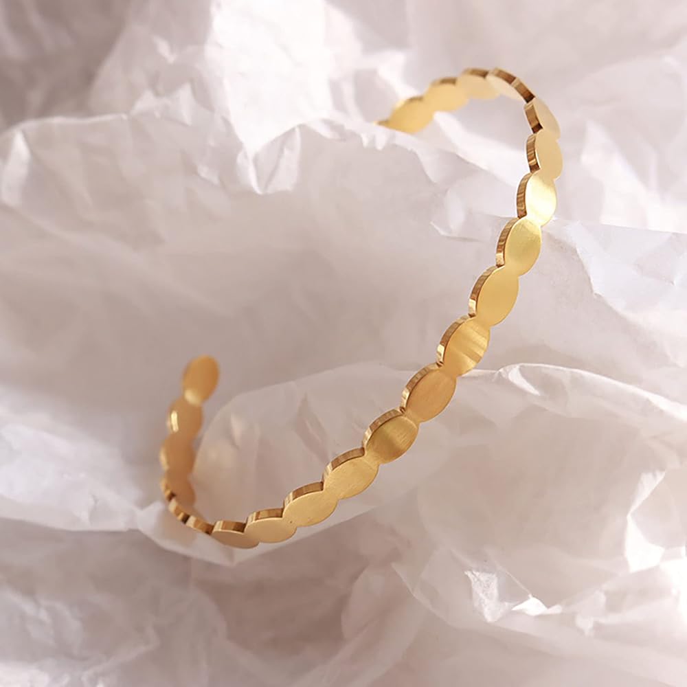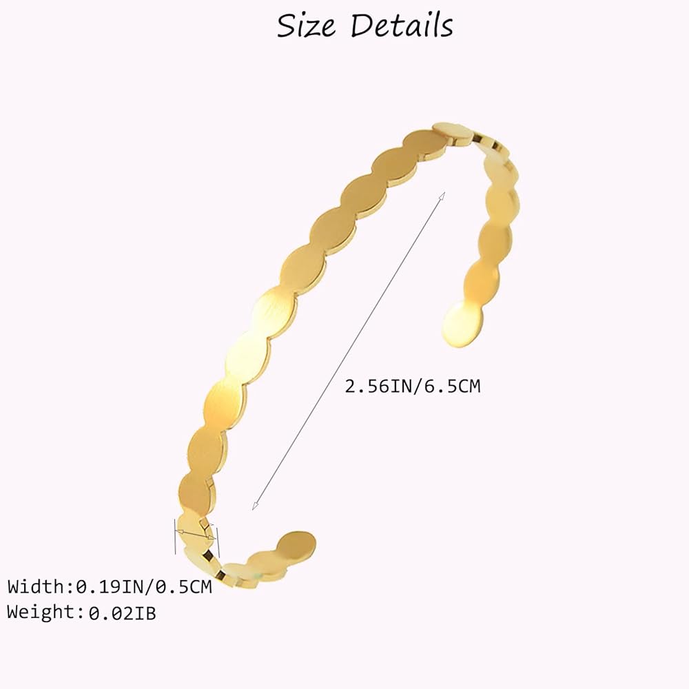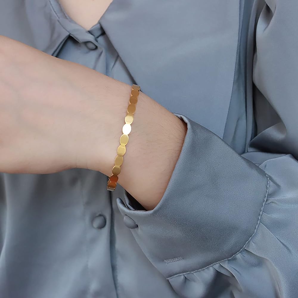 ⭐【Simple Design】 These gold oval bracelets are simple yet unique, weave design enhances charm while offering a stylish look. A quick and easy way to you show your charming and gorgeous and also giving you a better wearing experience.