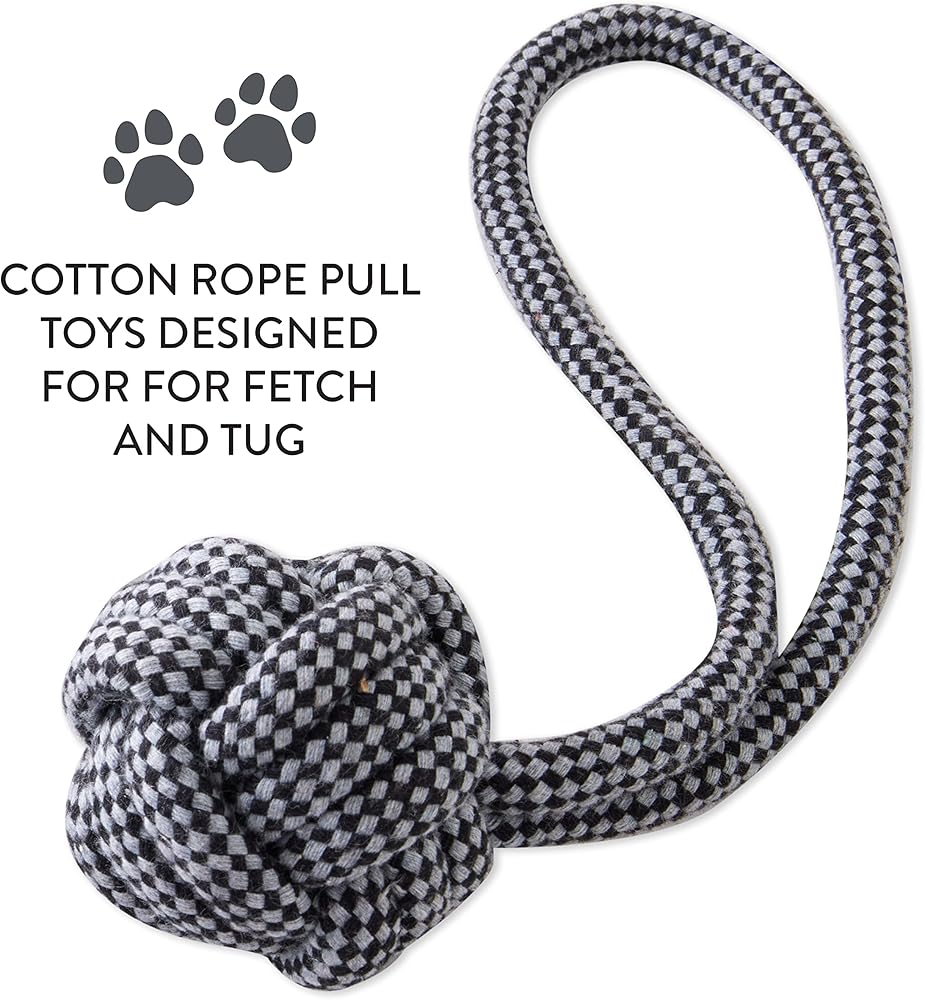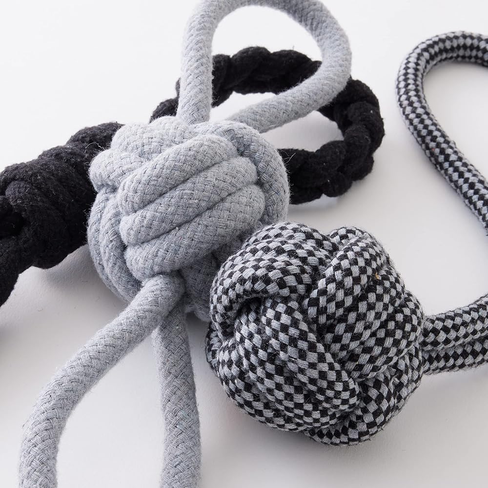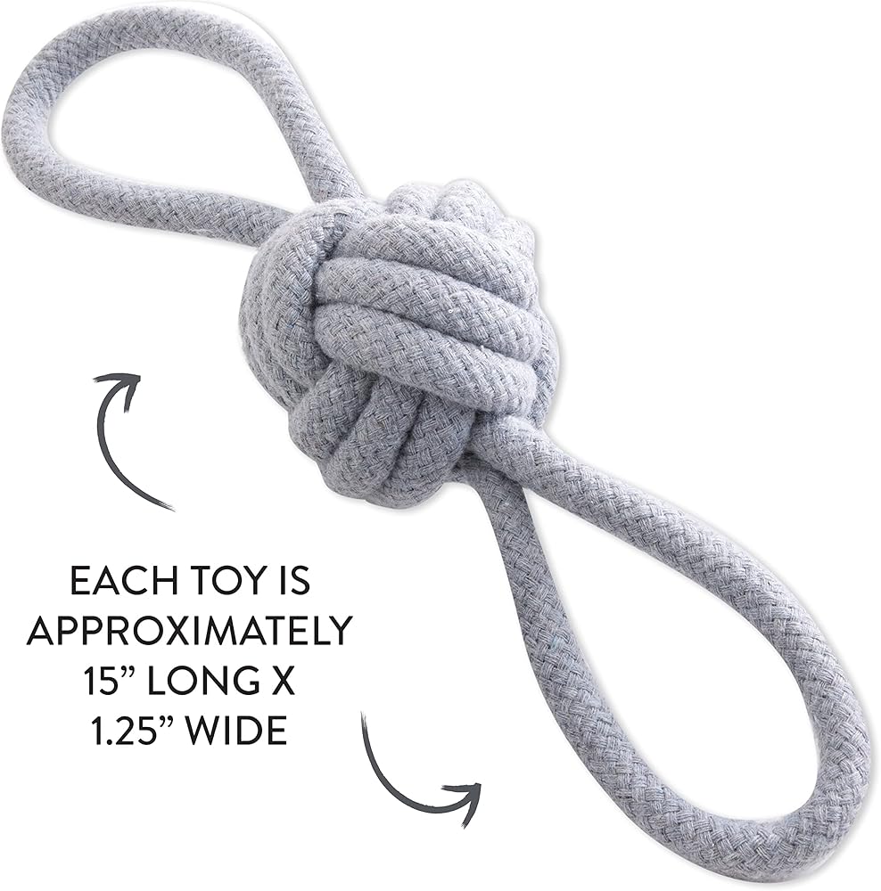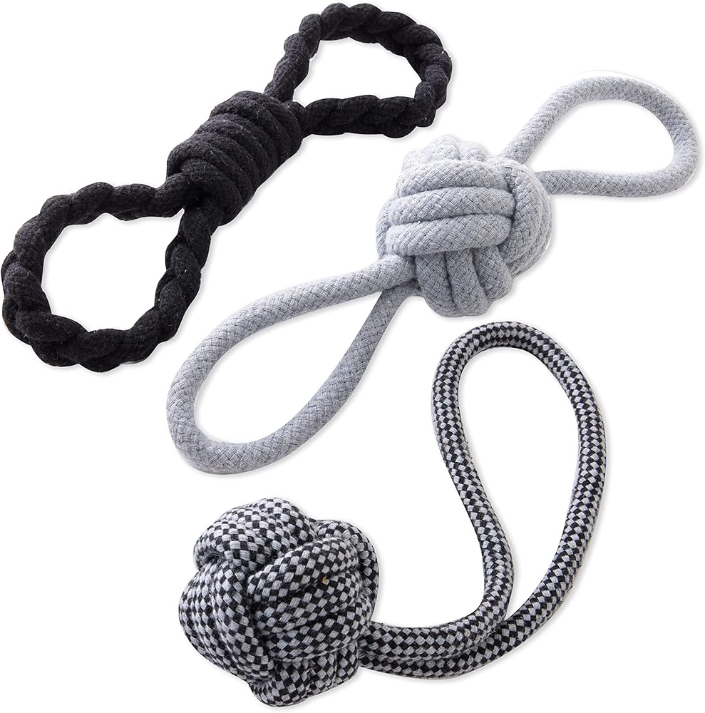 HonestBaby 3-Pack Rope Pull Toys Durable Organic Cotton for Pets, Black/Gray, One Size
