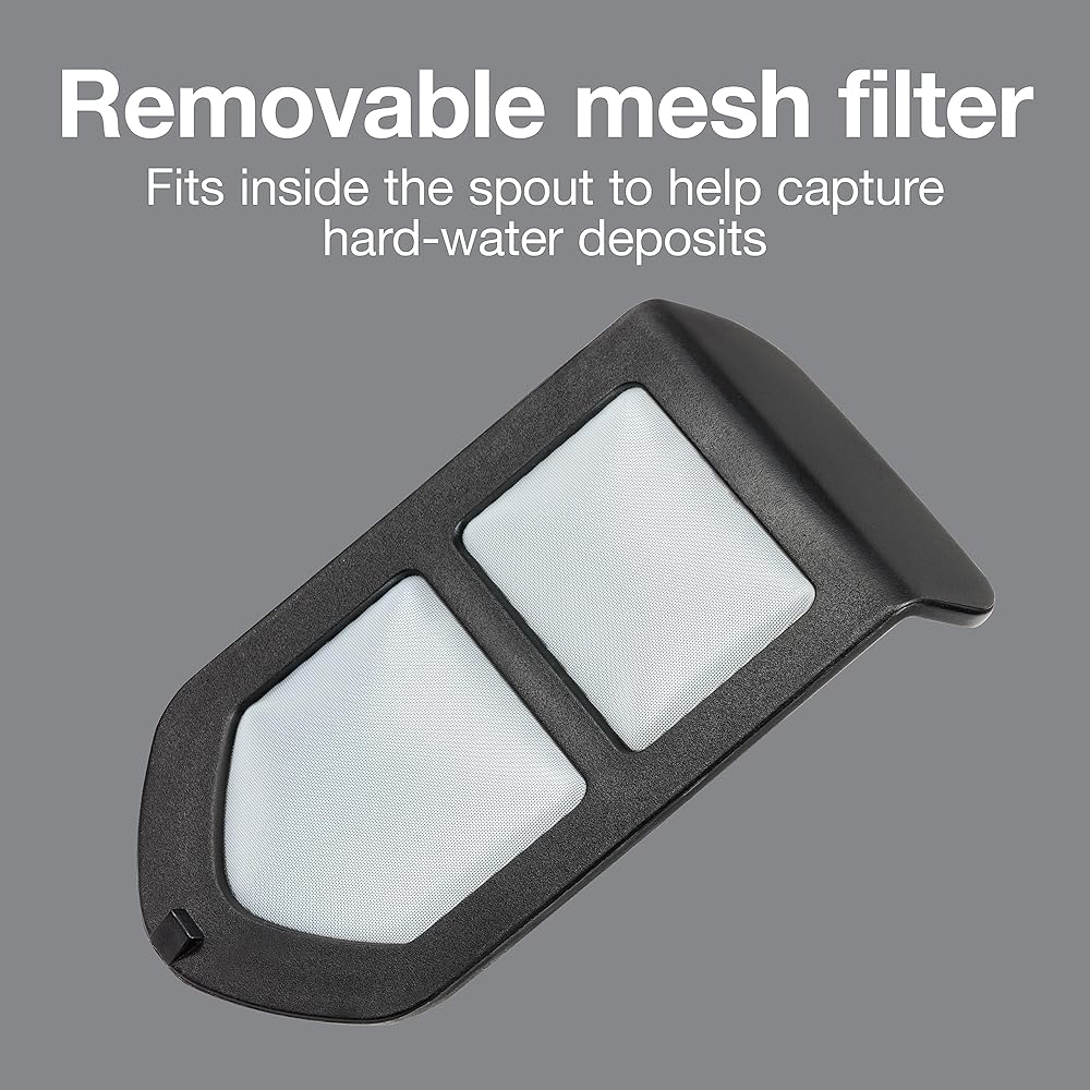 REMOVABLE MESH FILTER. The mesh filter inside the spout of this electric tea kettle helps capture hard-water deposits and can be easily removed for cleaning.