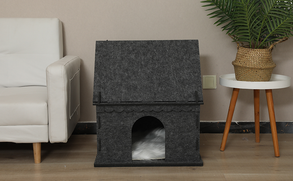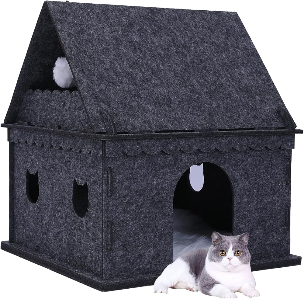 Spacious space:The interior is large space for the cat to fully stretch and exercise, with Windows around, ventilation, and a hairball on the top. The semi-enclosed space gives the cat a sense of security and facilitates the cat to hide its confusion