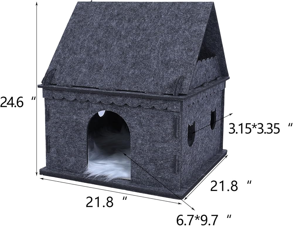 Product size:The product adopts 2-story castle design, size 21.8"×21.8"×24.6", intimate opening, fear no big cat, worry free up and down