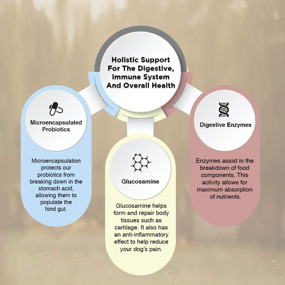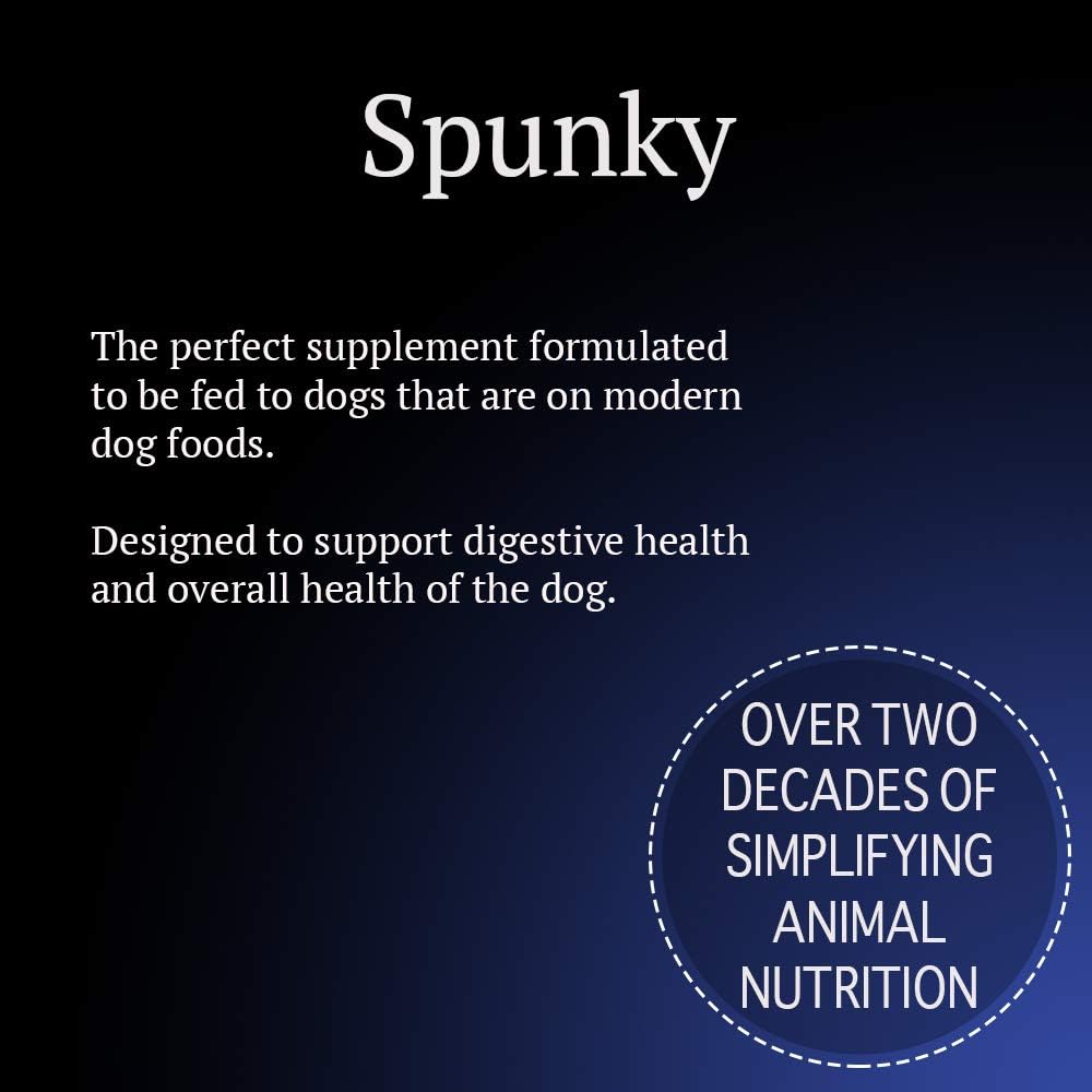 GREAT FOR ANY DOG: Our Spunky formula was designed specifically for the modern companion animal eating modern, highly sanitized and processed food, as well as the more active or older canine that may have joint aches or pains.