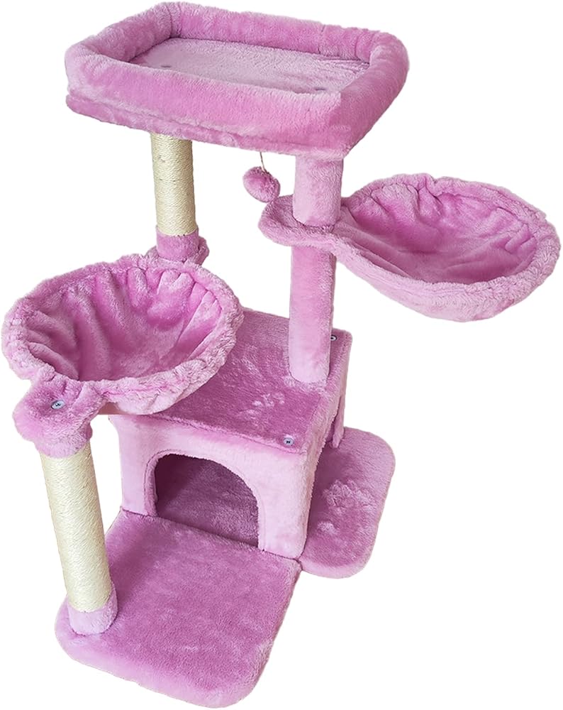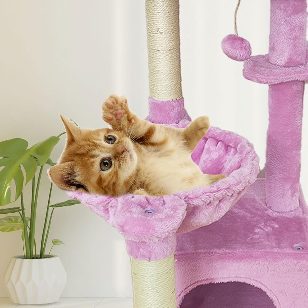 مياو باو برج القط شجرة القط للقطط الداخلية، شجرة القط اثنين من الأراجيح مع آخر الخدش، شجرة القط للقطط الصغيرة المتوسطة الكبيرة مع الكرة المتدلية، حامل شجرة القط للقطط، برج نشاط القط، الوردي