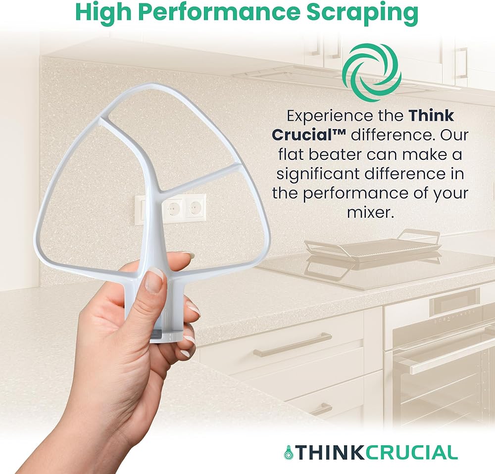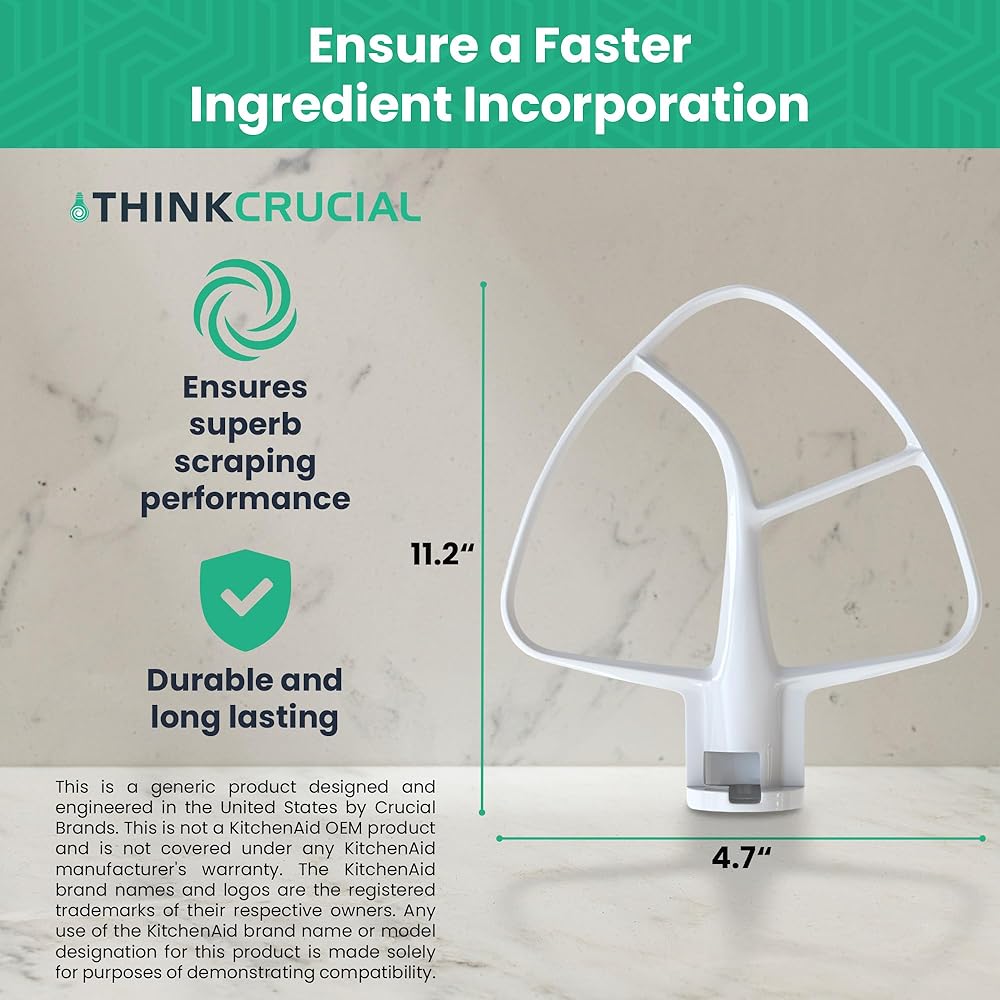 GREAT BOWL SCRAPING PERFORMANCE: Experience faster ingredient incorporation. Excellent tool to wipe the bowl clean when pouring finished batters and frostings. Top-shelf diswasher safe. Ideal accessory for mixing normal to heavy batters from cake mixes to extra-thick cookie dough. If you are making lots of batches, our replacement flat beater saves on wasted ingredients for cost efficiency, in turn, stretchning the investment.