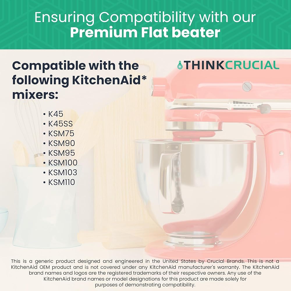 THINK CRUCIAL manufactures premium quality flat beaters and other kitchen and cooking parts we stand behind the quality and workmanship of all our products. We maintain a thorough quality control process to ensure compatibility with the KitchenAid models listed.
