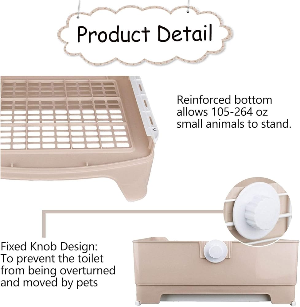 Fixed Knob Design:The pet litter pan with a fixed knob design,can be locked on the your cage.Prevent small animals from dragging the toilet,overturned litter box and scattered litter.Which designed to hold the litter tray securely to your cage,so it can always keeps nice and clean.