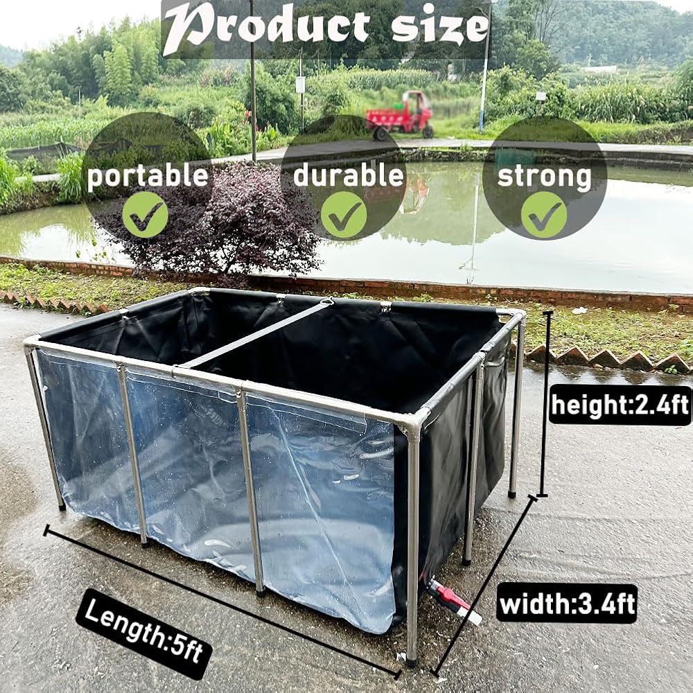 Portable: The size of this Aquarium Pool Pond is 5 feet x 3 feet 4 inches x 2 feet 4 inches, with a capacity of 270 gallons. Every tool and bracket required to set up this pond has been included. You can quickly set or remove it to meet your indoor or outdoor requirements, making it convenient for any situation.