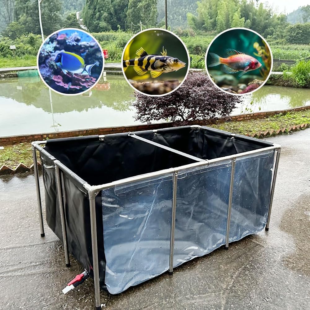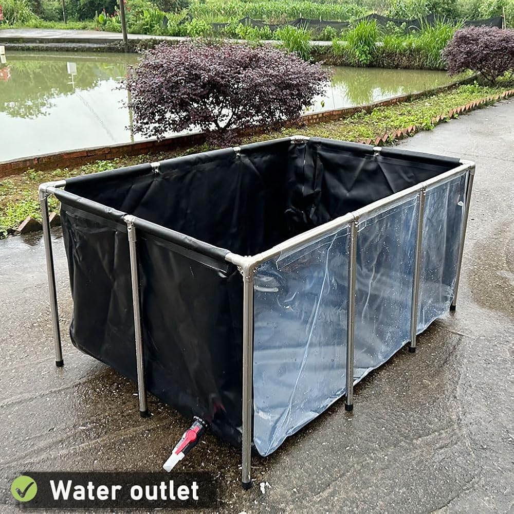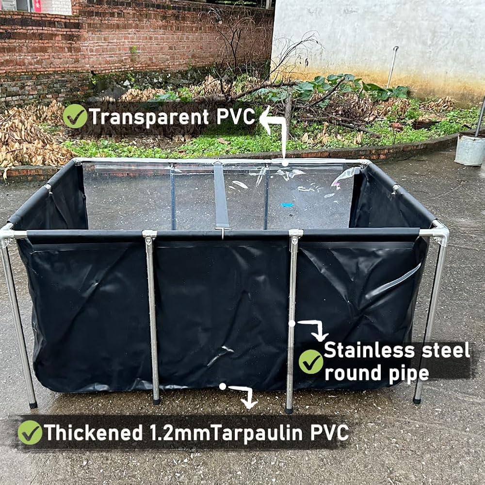 The Sturdiness Of The Vivarium: CLCLC's Aquarium Pool Pond is well constructed and made of heavy materials. The frame, T-shaped corners, support rods, and connectors are all made of high-strength 304 stainless steel. The black fabric of the fish pond is made of three layers of materials, with the first layer made of high toughness polyester yarn and two layers of waterproof PVC coating.The transparent fabric is made of three layers of high-quality transparent marine vinyl with a thickness of 1.2mm. This product has the characteristics of rust prevention, non deformation,corrosion resistance and long service life.