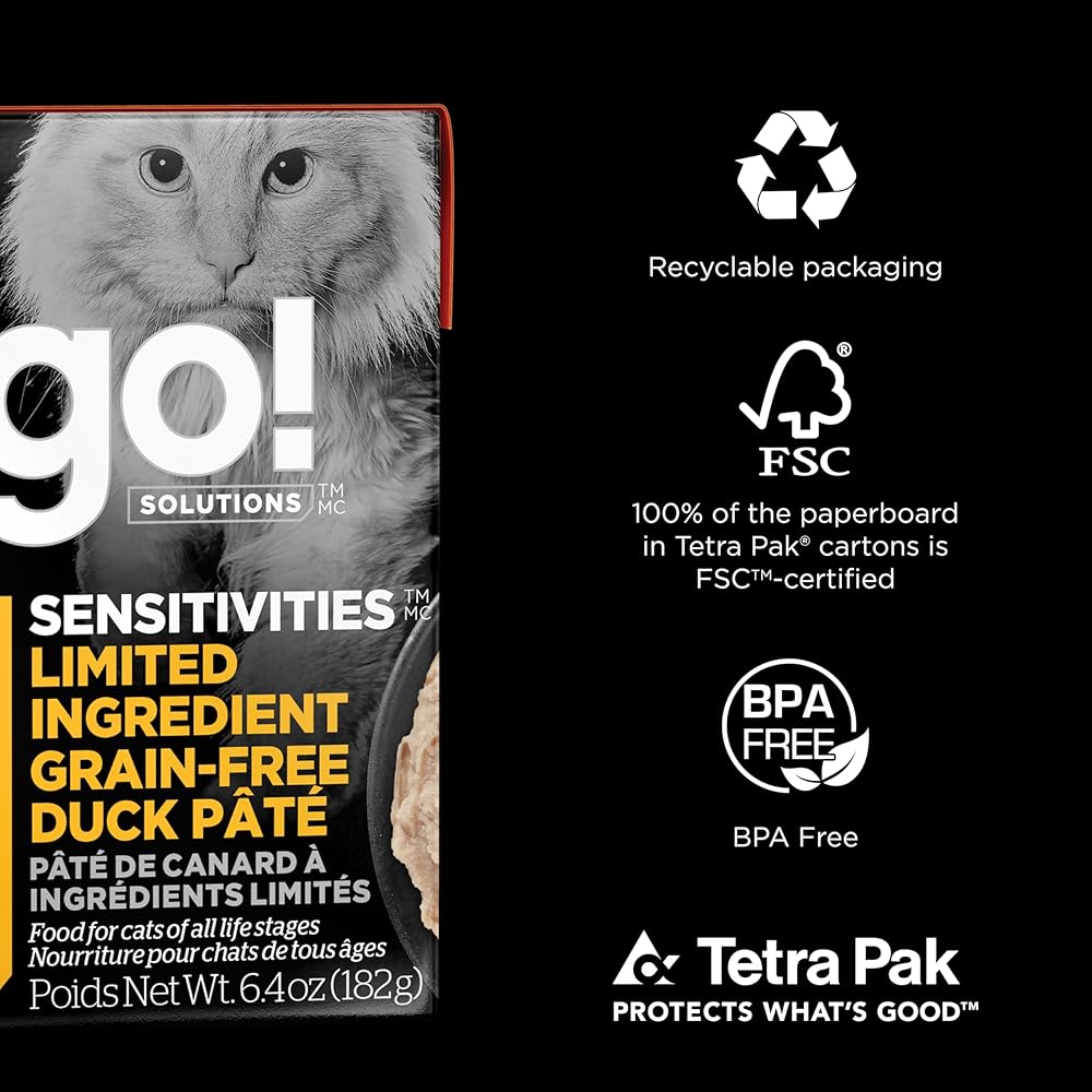 You've got pets? We do too, and we know that finding the right food for your cat or dog can be like walking blindfolded with the thought we all dread: "What if my pet reacts badly to it?" So, our team of expert pet nutritionists put their knowledge and experience to work to solve the big question: what should we feed pets who need something other than just ordinary pet foods? And they came up with a solution that we call GO! SOLUTIONS. They used only premium-quality ingredients carefully selected and balanced to provide simple solutions to support pets with all kinds of issues, from sensitive stomachs to skin + coat health. You can breathe easy knowing you're feeding your best pal premium nutrition tailored to their unique dietary needs. Hallelujah! No corn, no wheat, no soy. Complete + balanced recipes include natural ingredients like wild boar, salmon, duck, lamb, turkey and chicken. Available in 3.5, 12, 22 and 25 lb bag sizes. Try our limited ingredient feline natural cat food to support cats with a sensitive stomach, our skin + coat care recipes to support healthy skin and a shiny coat, and our recipes with maximum meat protein for active cats. Discover more healthy options formulated for cats of all sizes and ages from GO! SOLUTIONS.