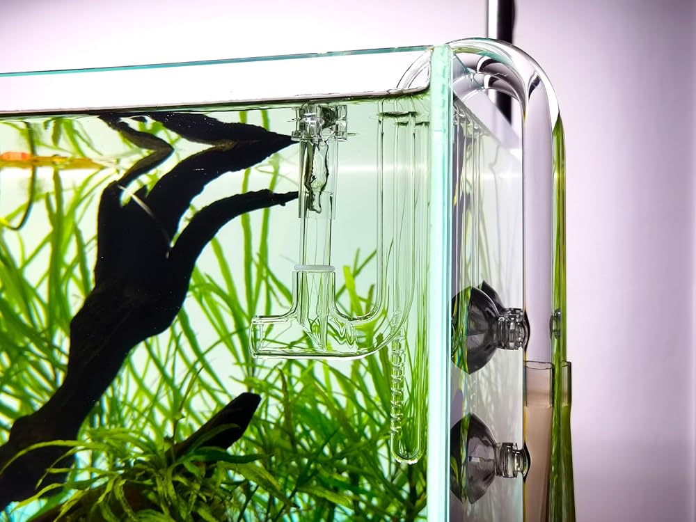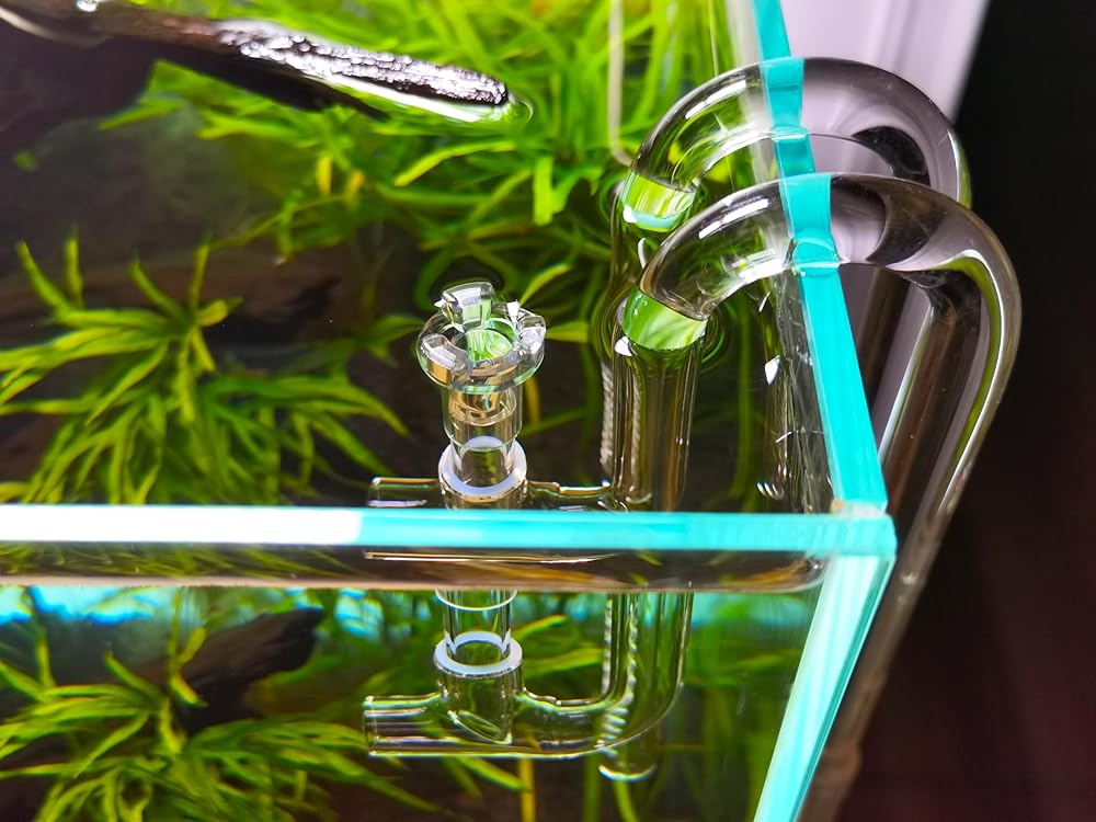 Hand-Blown Borosilicate Glass: Each piece is meticulously crafted from high-quality, laboratory-grade borosilicate glass. This choice of material ensures maximum strength, durability, and visual clarity, making each piece unique and adding a sophisticated look to the aquarium setup. Available in various sizes, it is compatible with standard-sized hoses.