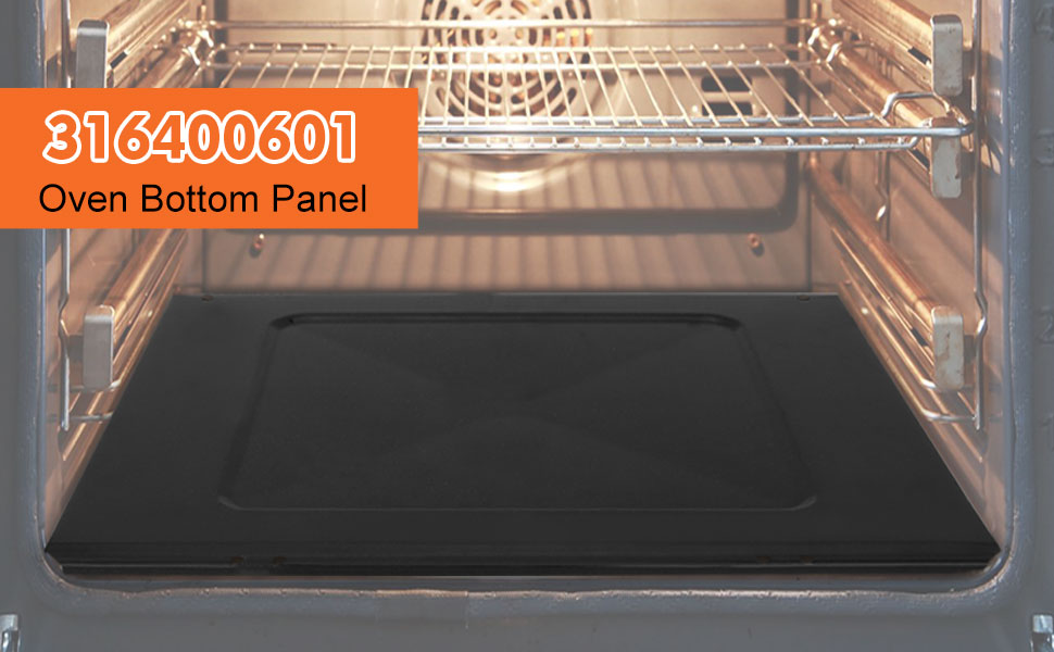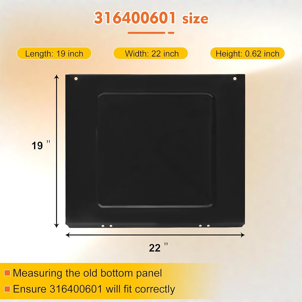 【Perfect Fit】 316400601 oven bottom panel is compatible with most common oven models. Please confirm the 316400601 oven bottom panel size before purchasing: Length: 19", Width: 22", Height: 0.62"