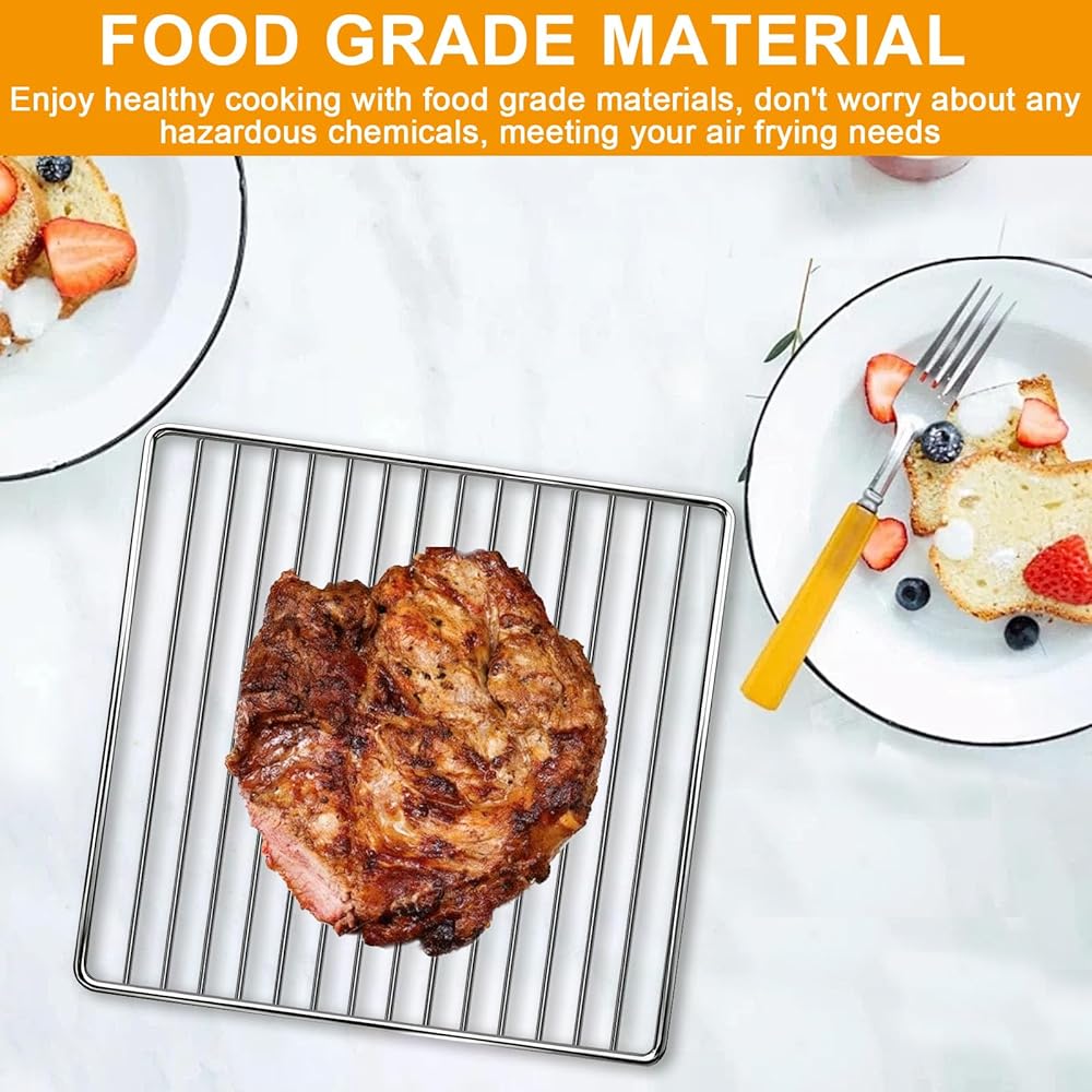 We are committed to providing customers with premium products, and customer's satisfaction is our top priority. Our air fryer racks are made of food grade stainless steel, meets FDA's standards and does not contain BPA. Non-toxic and tasteless. It's an ideal choice for enjoying healthy and safe cooking.