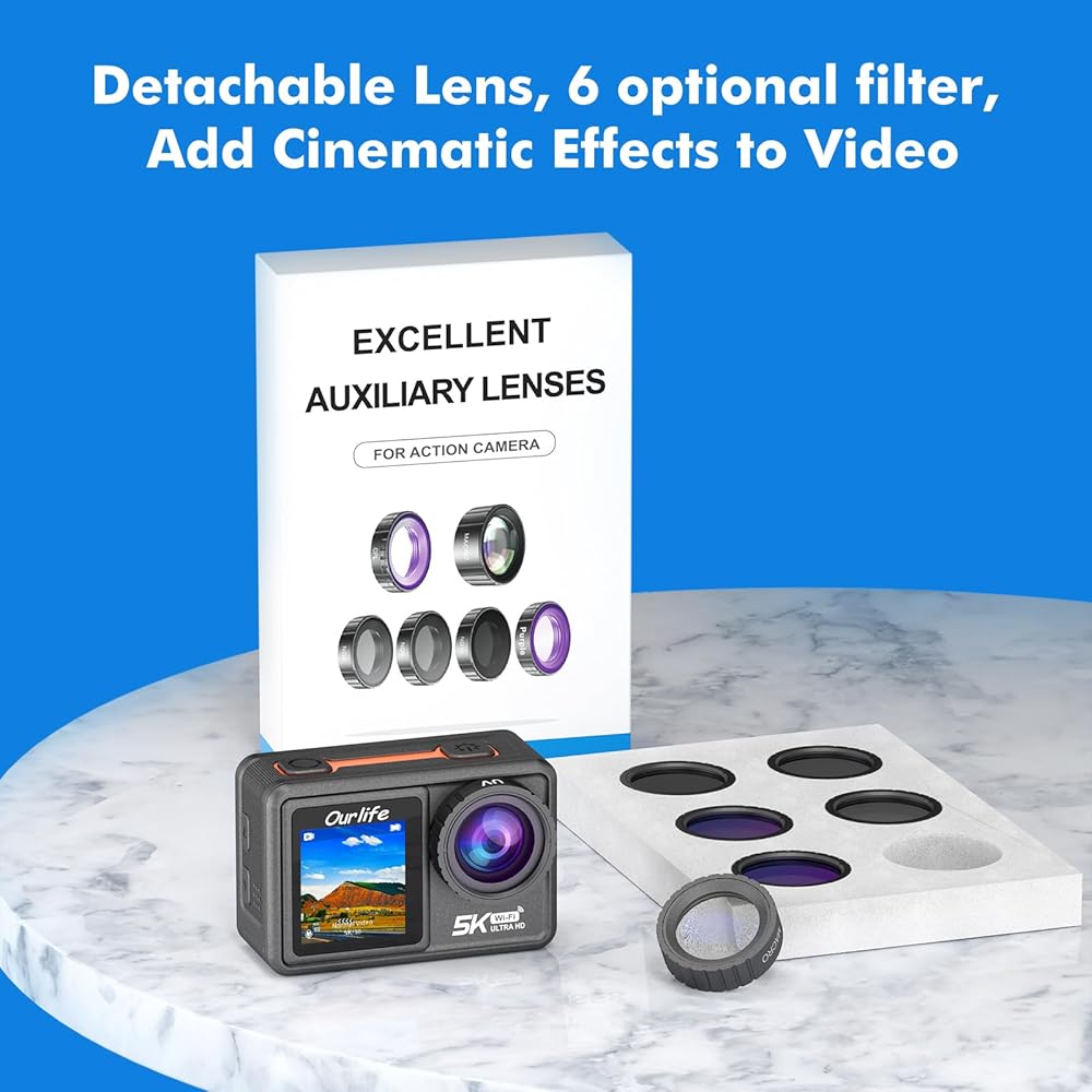 Detachable Lens & 6 UV Filters: Customize your shots with the detachable lens feature, allowing you to switch between 6 UV filters for different shooting environments and effects.