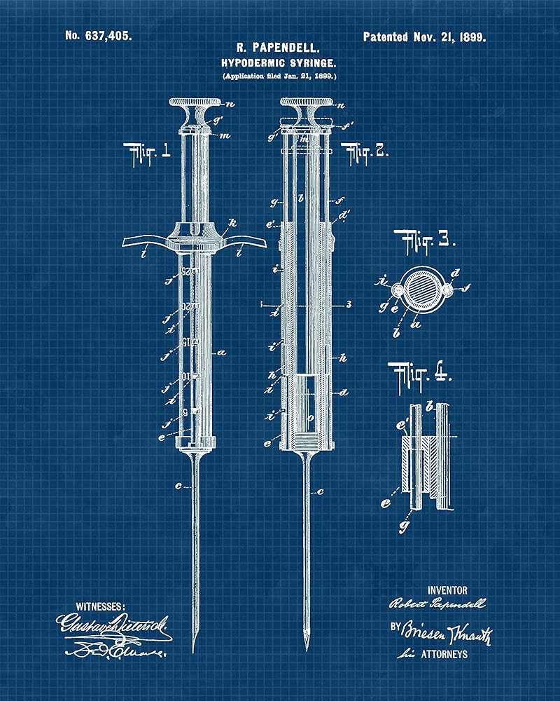 DESIGNED AND MADE IN USA. The set of 6 vintage blueprint posters prints is bound to impress and rival collectibles of fan, club or history buff. Make great healthcare art for office, nurse desk accessories, medical lab decor.