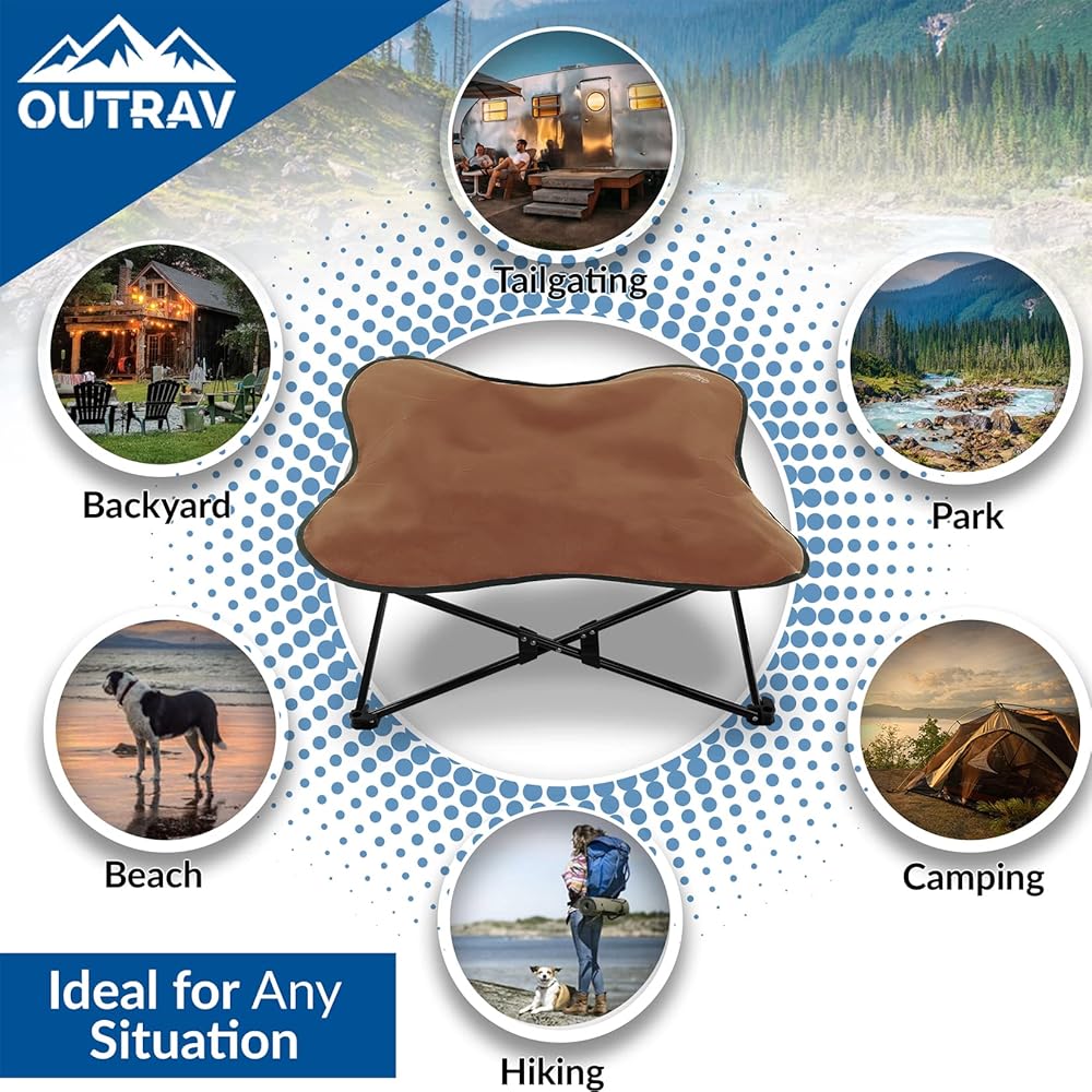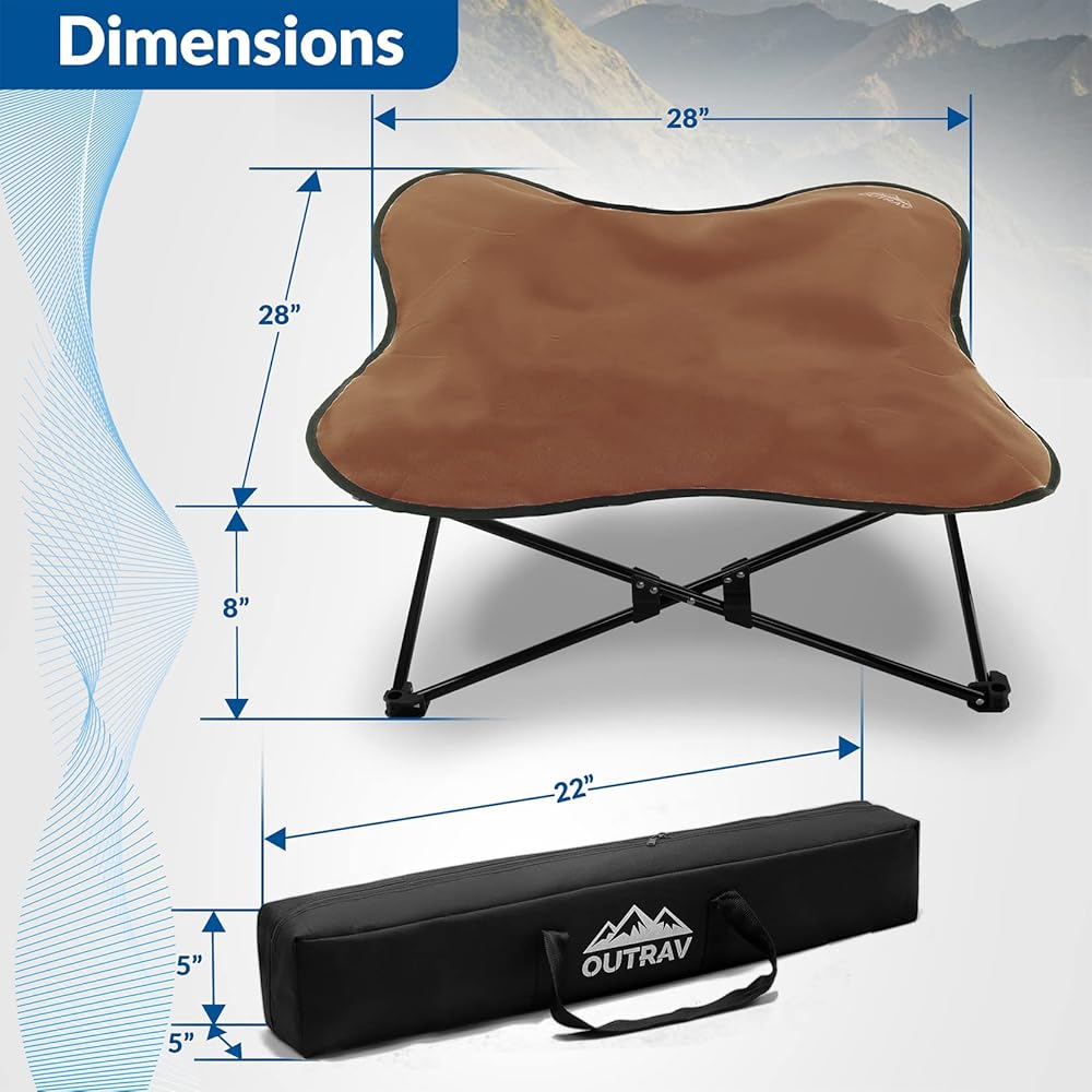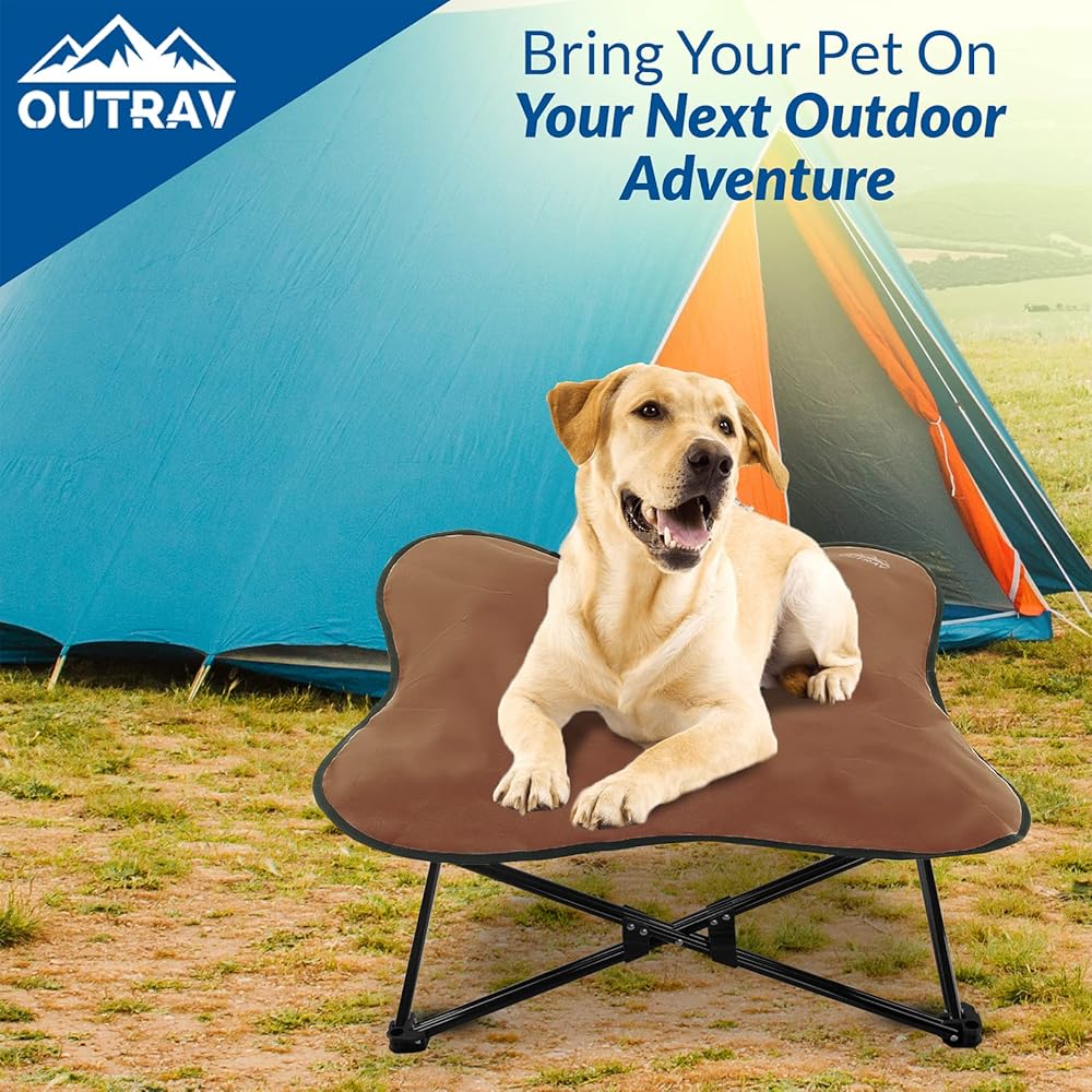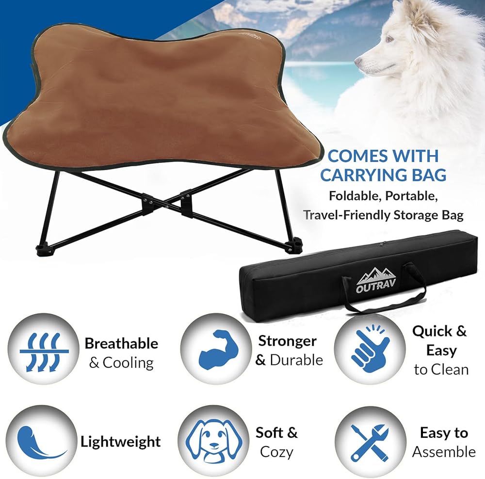 Outrav's original elevated dog bed pet cot is available in your choice of size. Both are perfect for camping on the beach with your pet, travel