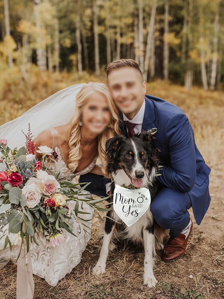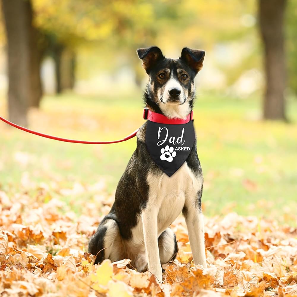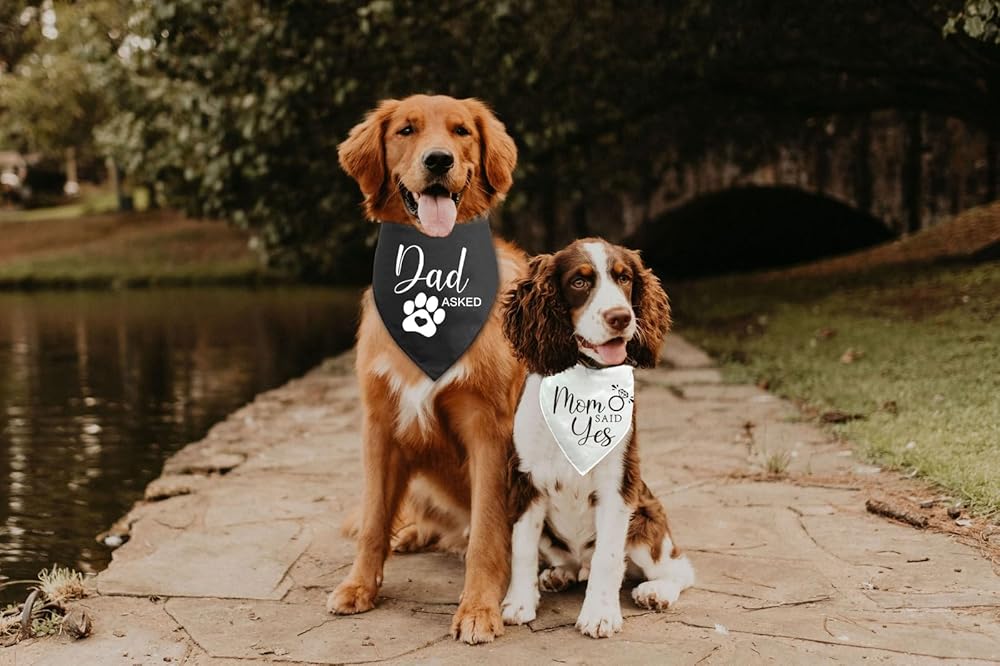 2 Pack - Dad Asked and Mom Said Yes Dog Scarf Bandana Wedding Engagement Photo Prop and Pet Scarf Accessory for Pet Dogs, Bridal Shower Gift and Pet Accessory for Dog Lovers
