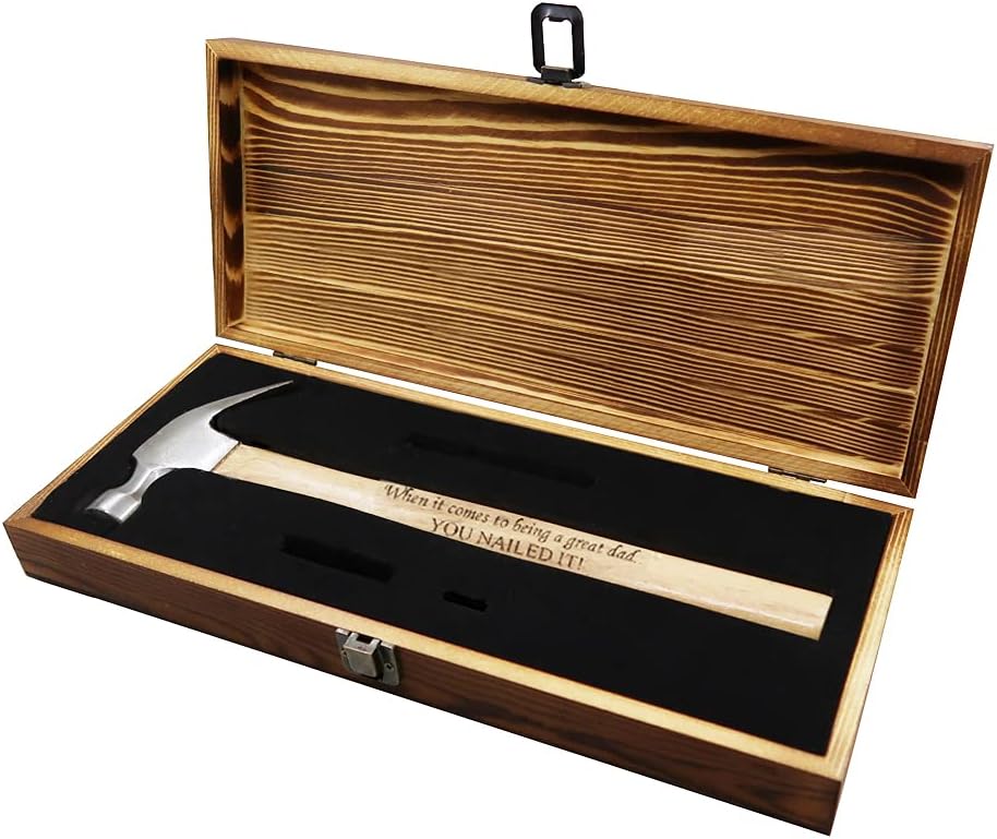 Looking for a unique and meaningful gift for your dad ? Check out this engraved wood handle hammer in a premium wooden gift box from Etchpress. This hammer is not only a practical tool for household tasks, but also a sentimental reminder of your love and appreciation for your dad. The hammer features a steel head and a wood handle that is engraved with “ When it comes to being a great dad, YOU NAILDED IT ! " This is a thoughtful and durable gift that your dad will cherish and use for years to come.