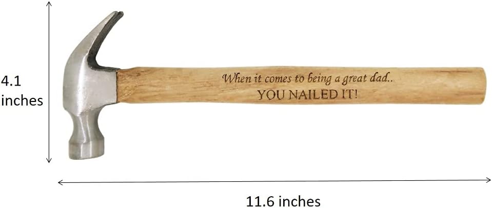 The hammer features a high-quality steel head and a sturdy wood handle that is engraved with “When it comes to being a great dad you nailed it”.