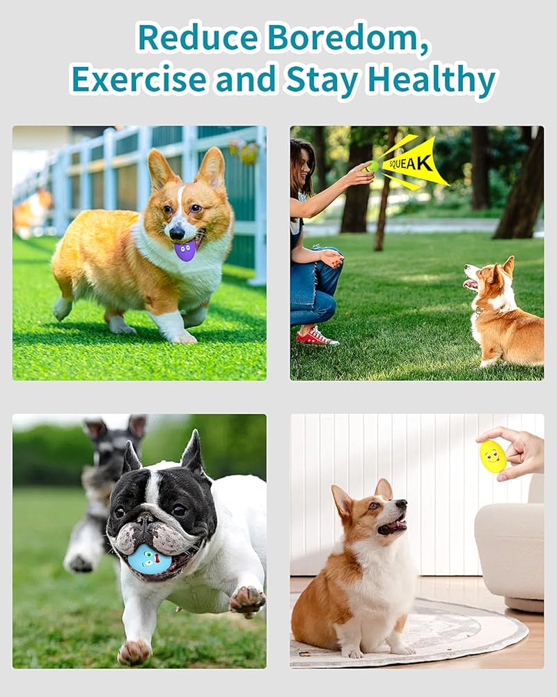 Interactive Dog Toy for Multiple Games: The squeeky bouncing doggy toy is perfect for tossing, fetching and retrieving to enhance your relationship with your pet. The light weight balls float on water, also great for water games in the pool and outdoor training to keep dogs healthy.