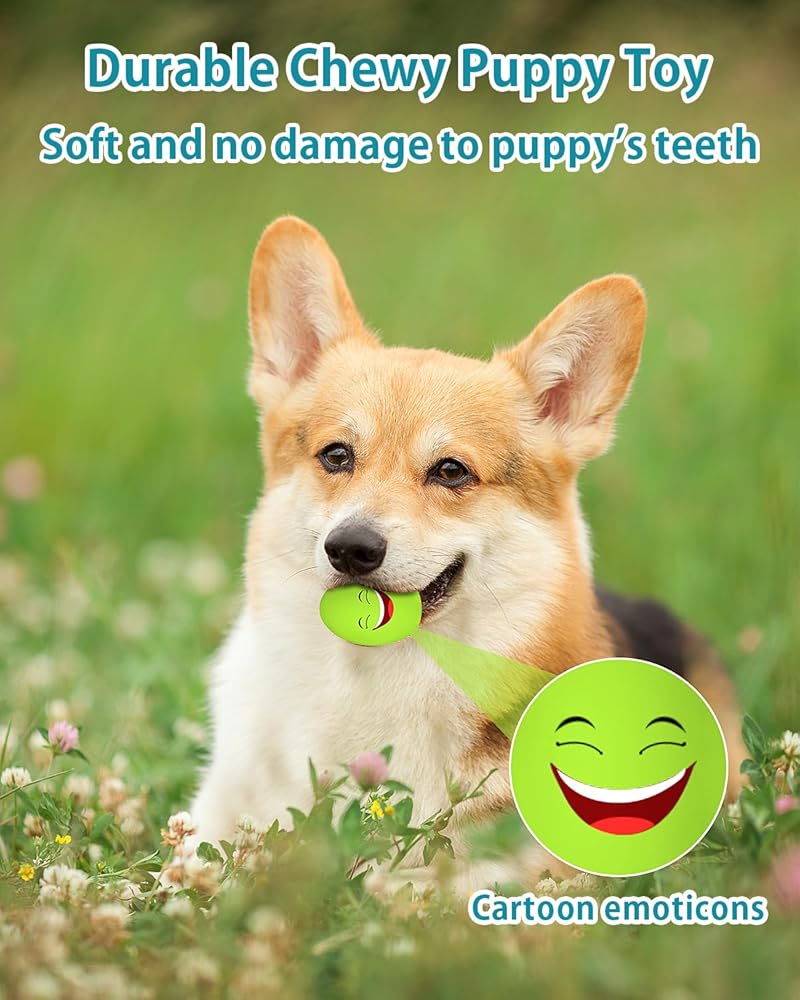 10 PCS Cute Toy Set for Small Breeds: The vibrant tiny balls with smiley faces are suitable for small medium sized dogs such as Yorkie, Pug, Dachshund, Havanese, Poodle, Pomeranian, Shih Tzu, Chihuahua and Mini Schnauzer, perfect gift for Christmas, Easter and dog birthday.