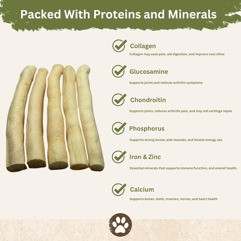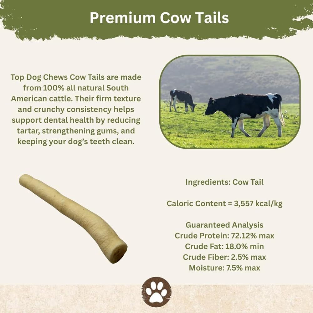 Digestive Health: Cow tail treats can provide natural dietary fiber, which can support healthy digestion in dogs. Adequate fiber intake helps prevent digestive issues such as constipation.