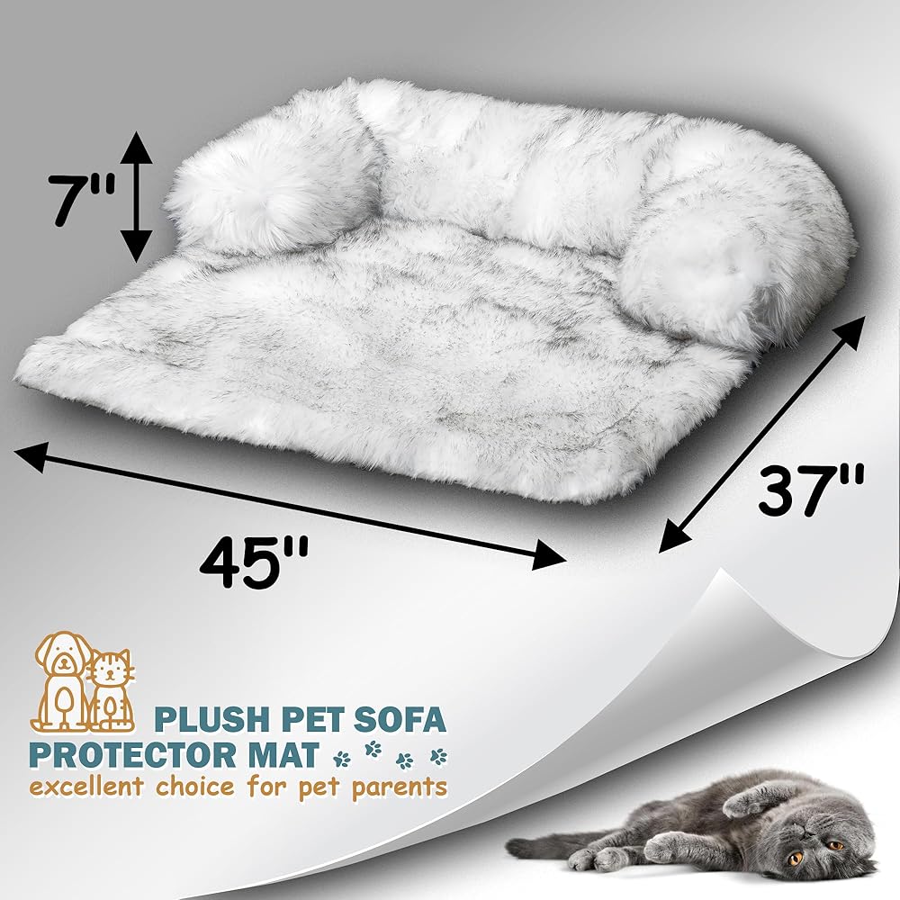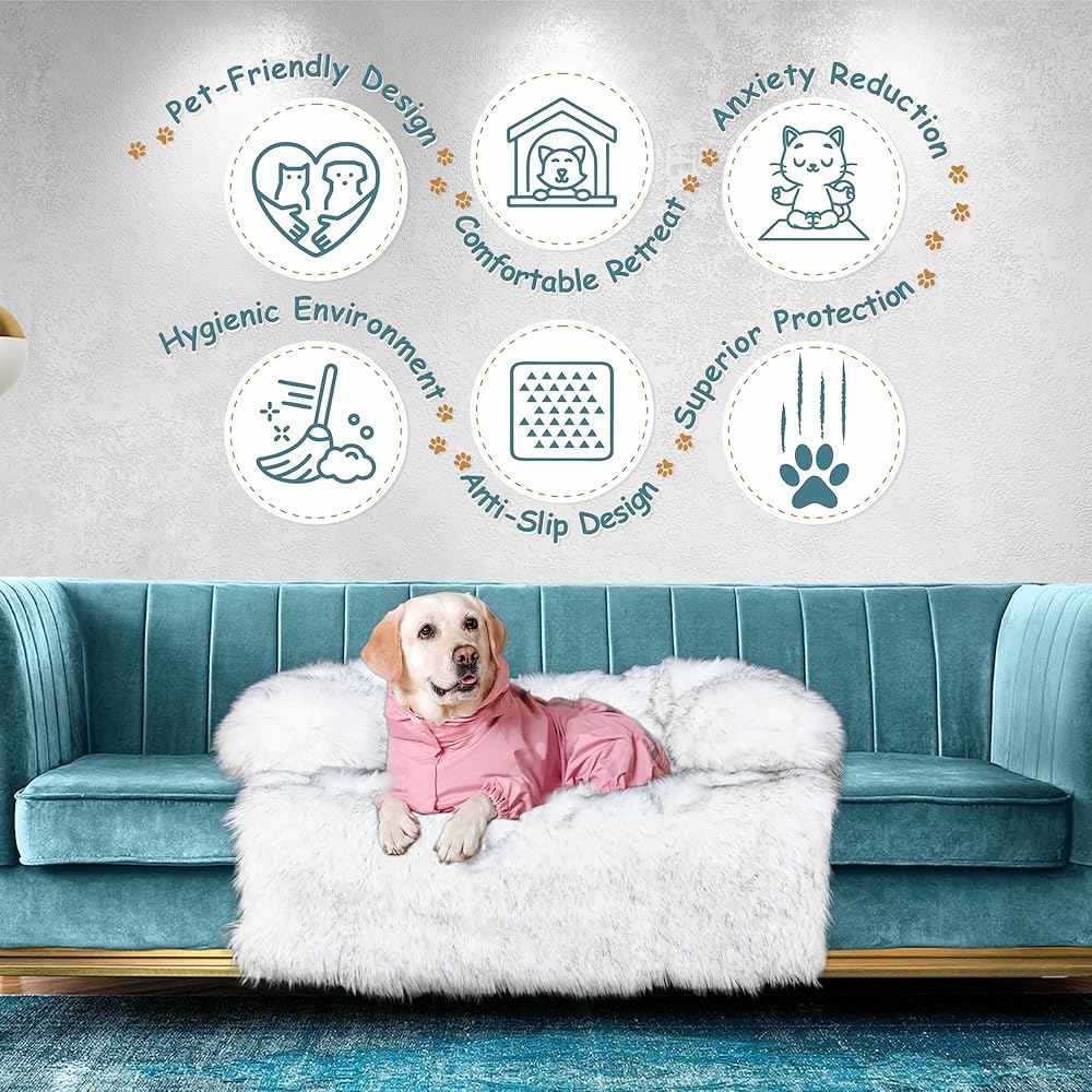 TOPITOP original calming dog and cat bed. With waterproof lining, removable washable dogs landing furniture protector, antianxsies plush faux fur couch dog beds for large dogs. CALMING PET BED FOR BETTER SLEEP - Thanks to its unique shape and our best couch protector for dogs, it is ideal for pets who love to curl in as in a donut bed, but provides more space to stretch out as in owner's own bed. Puffy and resilient bolster makes your loved one feel protected or serves as a pillow for comfy, deep sleep. EXCEPTIONAL RELAXATION AND COMFORT – enjoyable and cozy, with humane original faux fur, TOPITOP dog bed for couch is designed to feel like a touch of mother which would soothe anxiety put your pet into sweet, healthy sleep. Let him rest now and be back awoke later in a great mood for joy and play! - FURNITURE PROTECTION AND MAINTENANCE – TOPITOP dog bed for couches and sofas not only provides your pet with best resting experience, but it also protects your sofa from leaks, pet hair, and after-play outdoor dust. Let them fool around, chew their favorite toy – all on their favorite sofa! Just throw over our dog bed couch protector. If any accidental messes have happened – unzip the bottom, remove the inner bolster, wash in cold water, and tumble dry on low. Shake easily to fluff up. - VERSATILE DESIGN – couch pet bed is colored in UNIVERSAL white with black tips to fit perfectly into any interior. It would harmoniously extend nearly any home décor, no mater where used: on a sofa, a bed, on the floor, or even in a car. Our couch dog bed would compliment just about any space! SATISFACTION GUARANTEE – as loving pet parents, we are working our best to meet your pet criteria (and yours too, for sure!). Customer satisfaction is not just words for us! Choice of the best and safest materials, making it the best shape – all is to meet our furry kids needs!