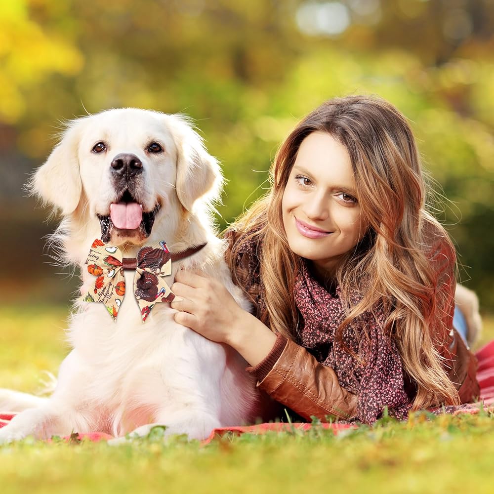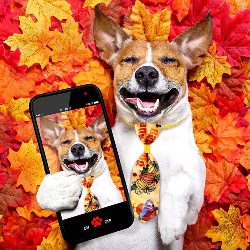Sadnyy 60 Pcs Thanksgiving Dog Bows Bulk Dog Collars Adjustable Turkey Pumpkin Puppy Bowtie Collar Includes 24 Pet Neck Ties and 24 Bowties 12 Pet Fall Bowknot Set for Grooming Decor