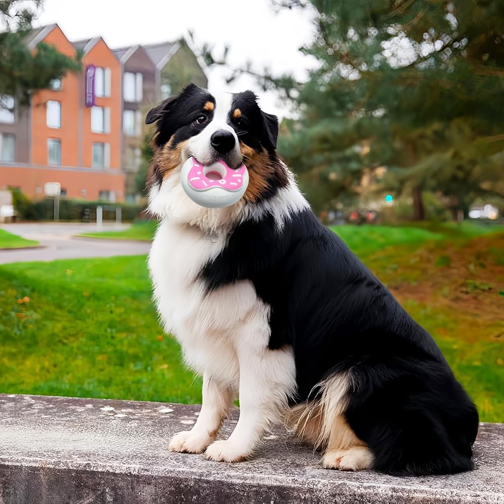 【Indoor and outdoor dog toy】This is a dog toy that can be used both indoors and outdoors. When you are not at home, your dog can play with the toy by themselves to pass the boring time and relieve their anxiety and restlessness. Outdoors, the donut toy allows you to interact with your dog, whether it's fetching, training or swimming, and helps keep your dog healthy.
