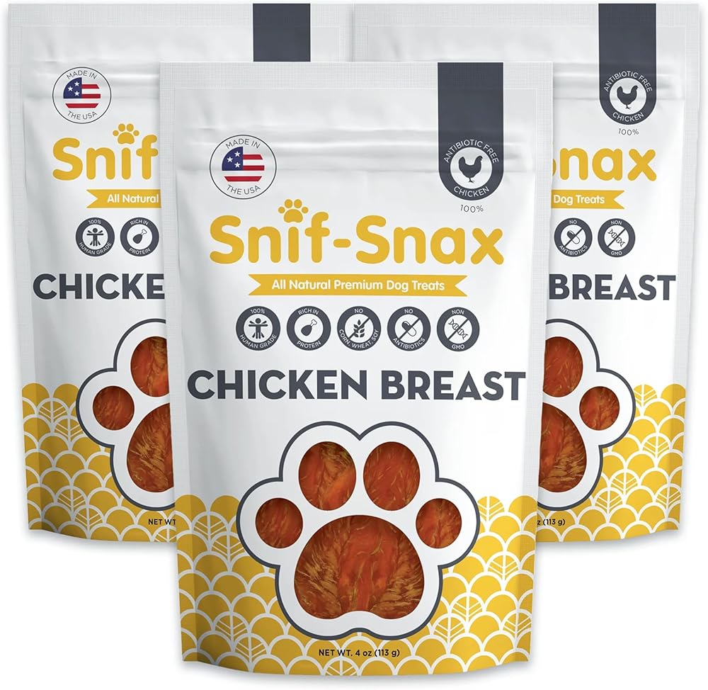 Snif-Snax Smoked Chicken Breast Dog Treats (4oz, 3-Pack) – All Natural Human Grade Jerky – Grain Free Training Treats for Dogs – Single Ingredient, Chicken Strips for Small, Medium & Large Dogs